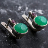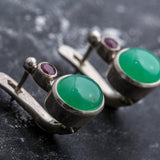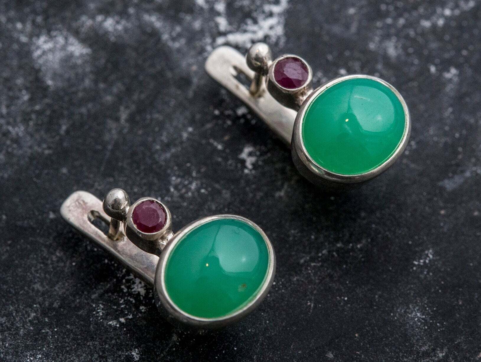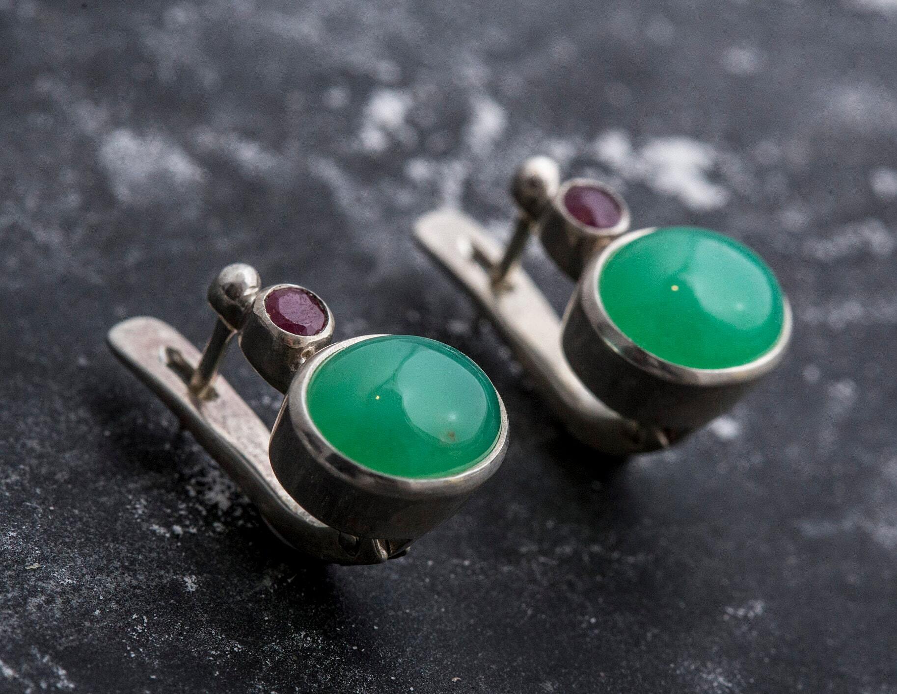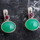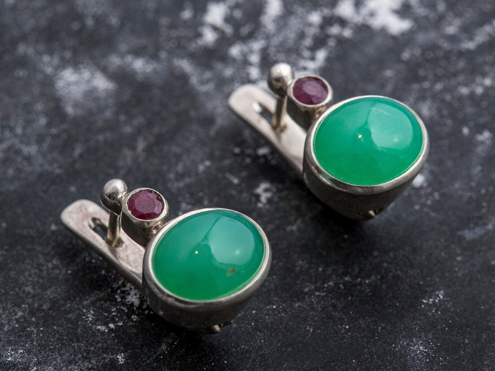 Chrysoprase Earrings, Natural Chrysoprase, Natural Ruby, May Birthstone, Green Earrings, Unique Earrings, Oval Earrings, Genuine Stone, Gift