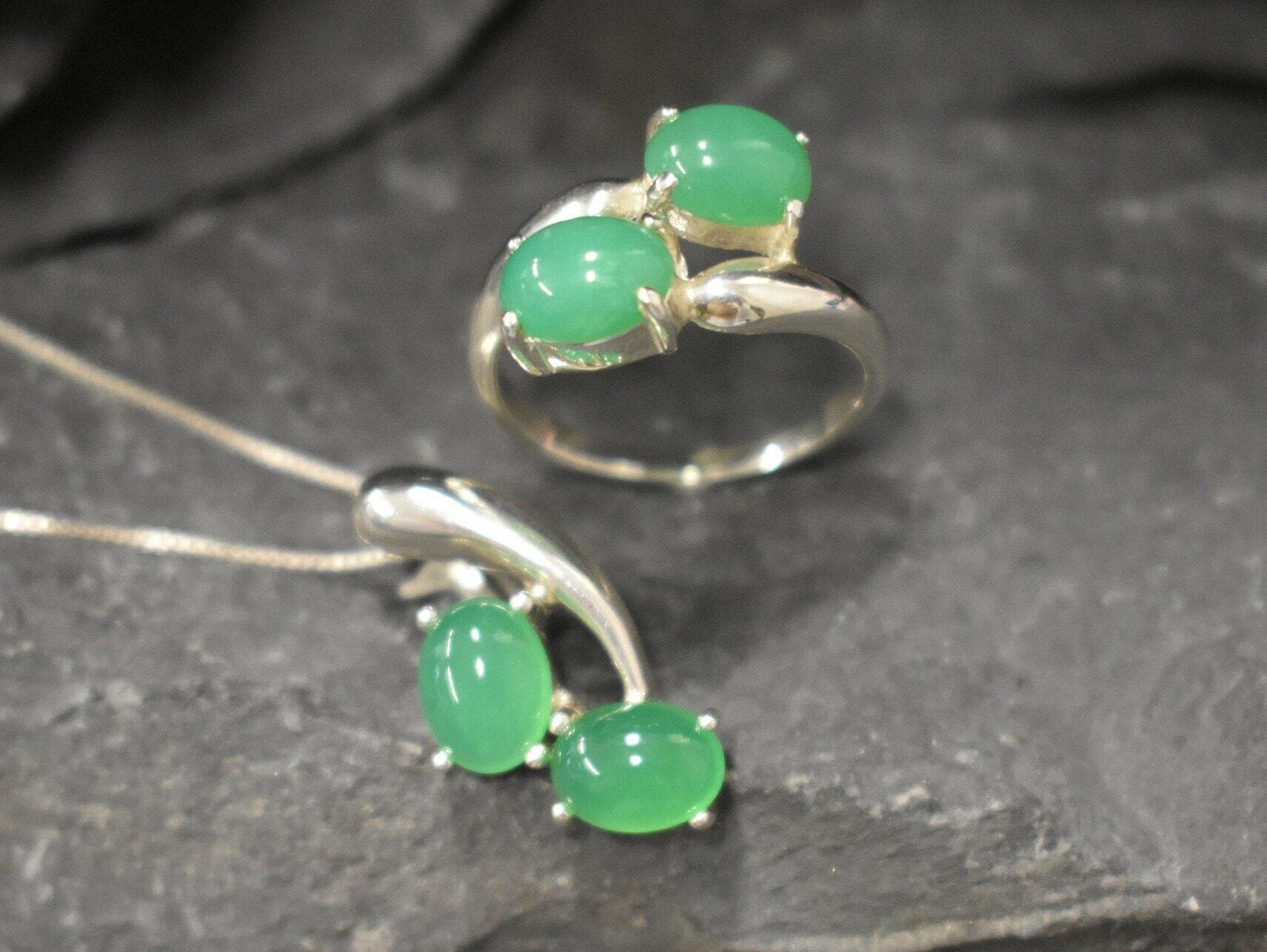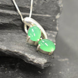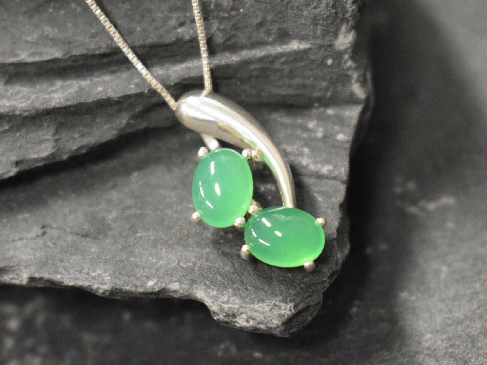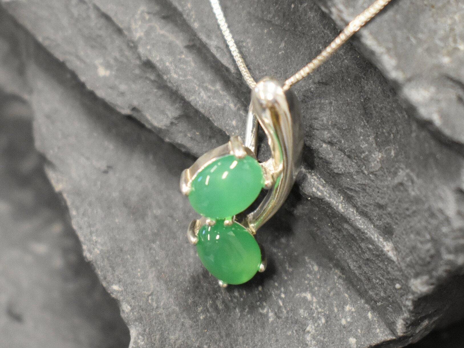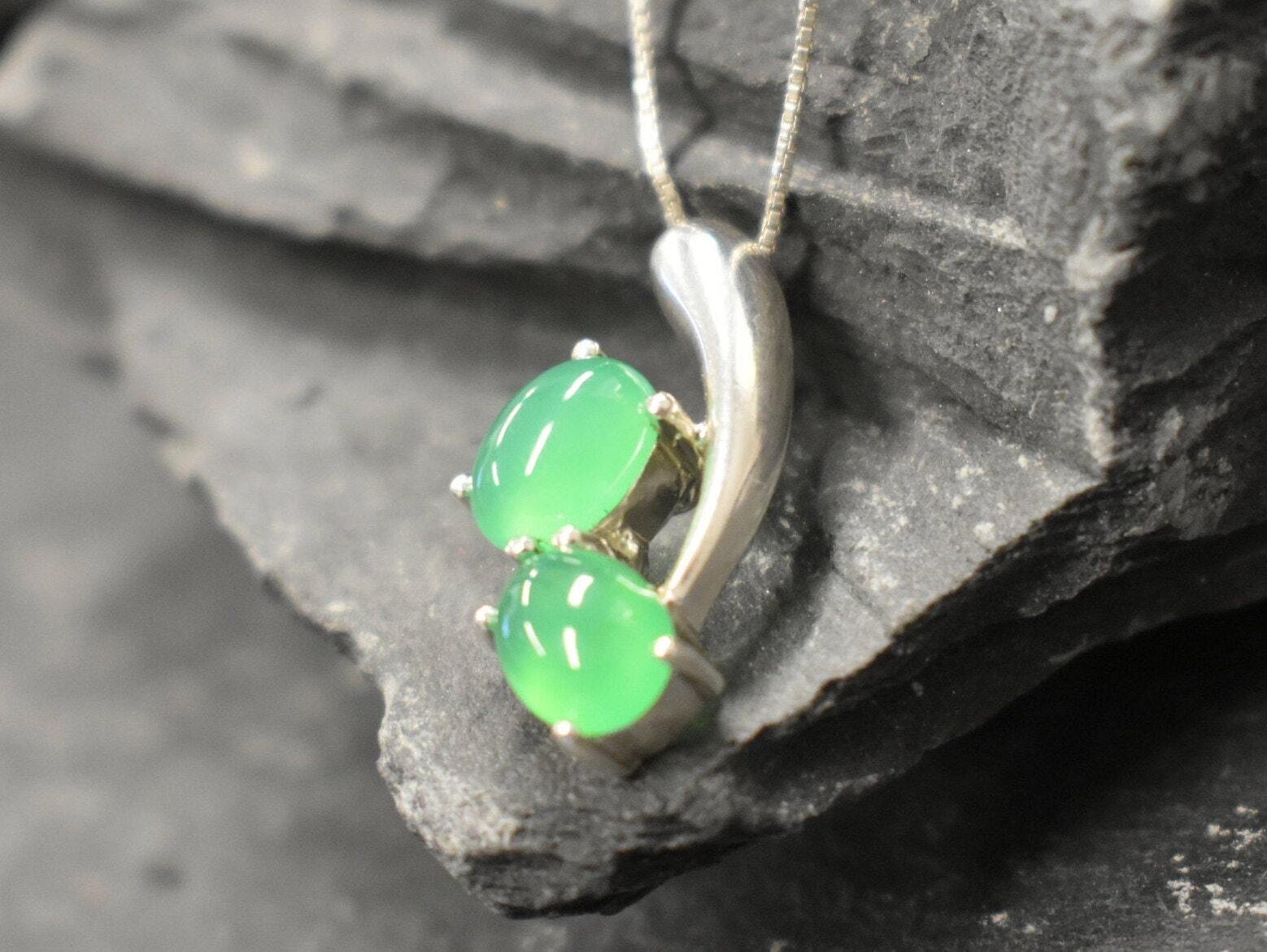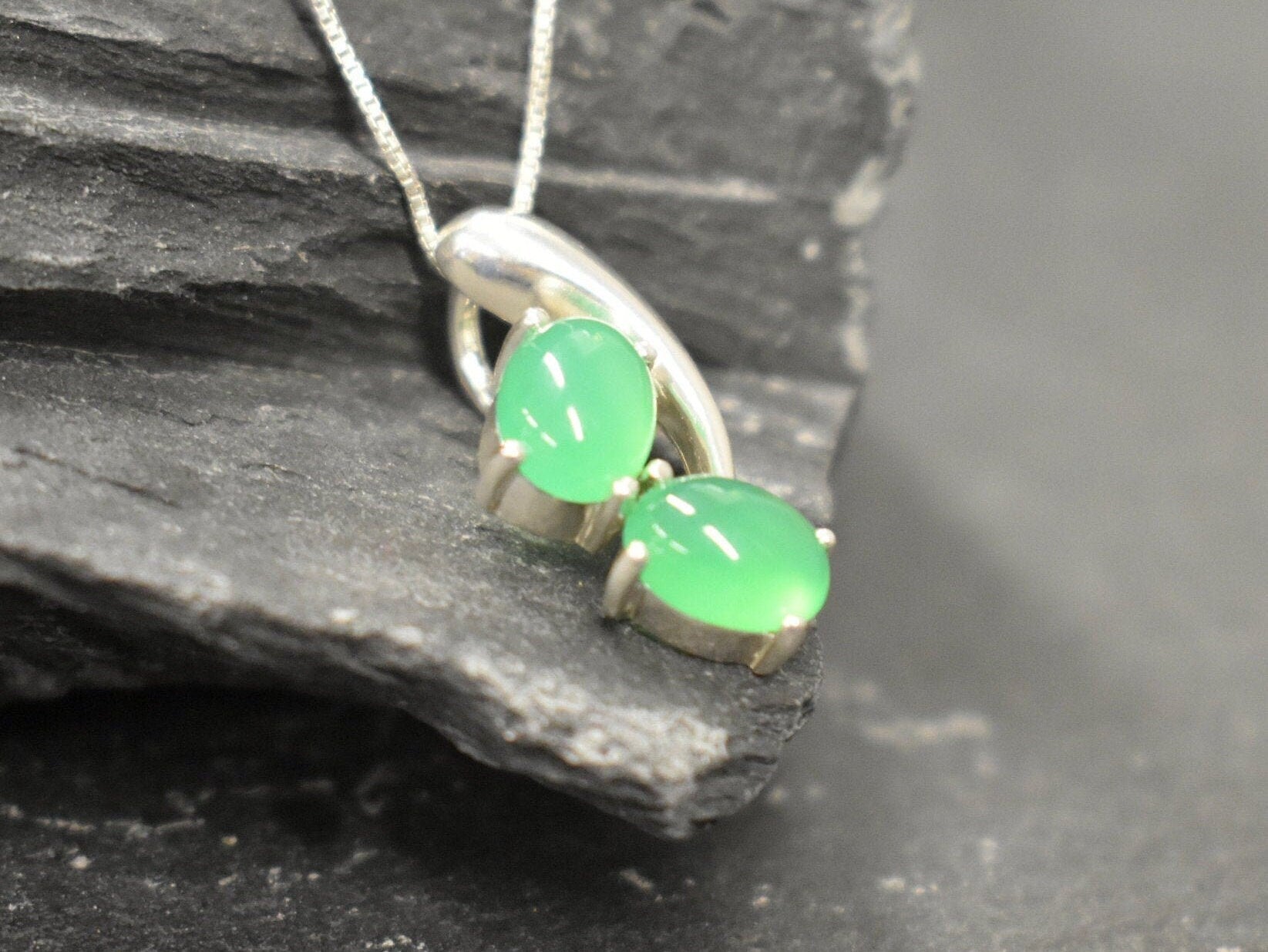 Chrysoprase Pendant, May Birthstone, May Birthday Gift, Two Stone Pendant, Green Pendant, Chrysoprase Necklace, Chrysoprase Gemstone, Silver