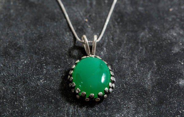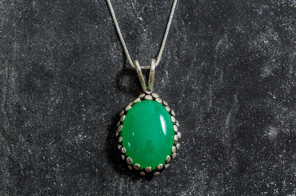 Chrysoprase Pendant - Natural Chrysoprase Necklace - Green Statement Necklace