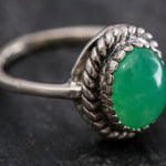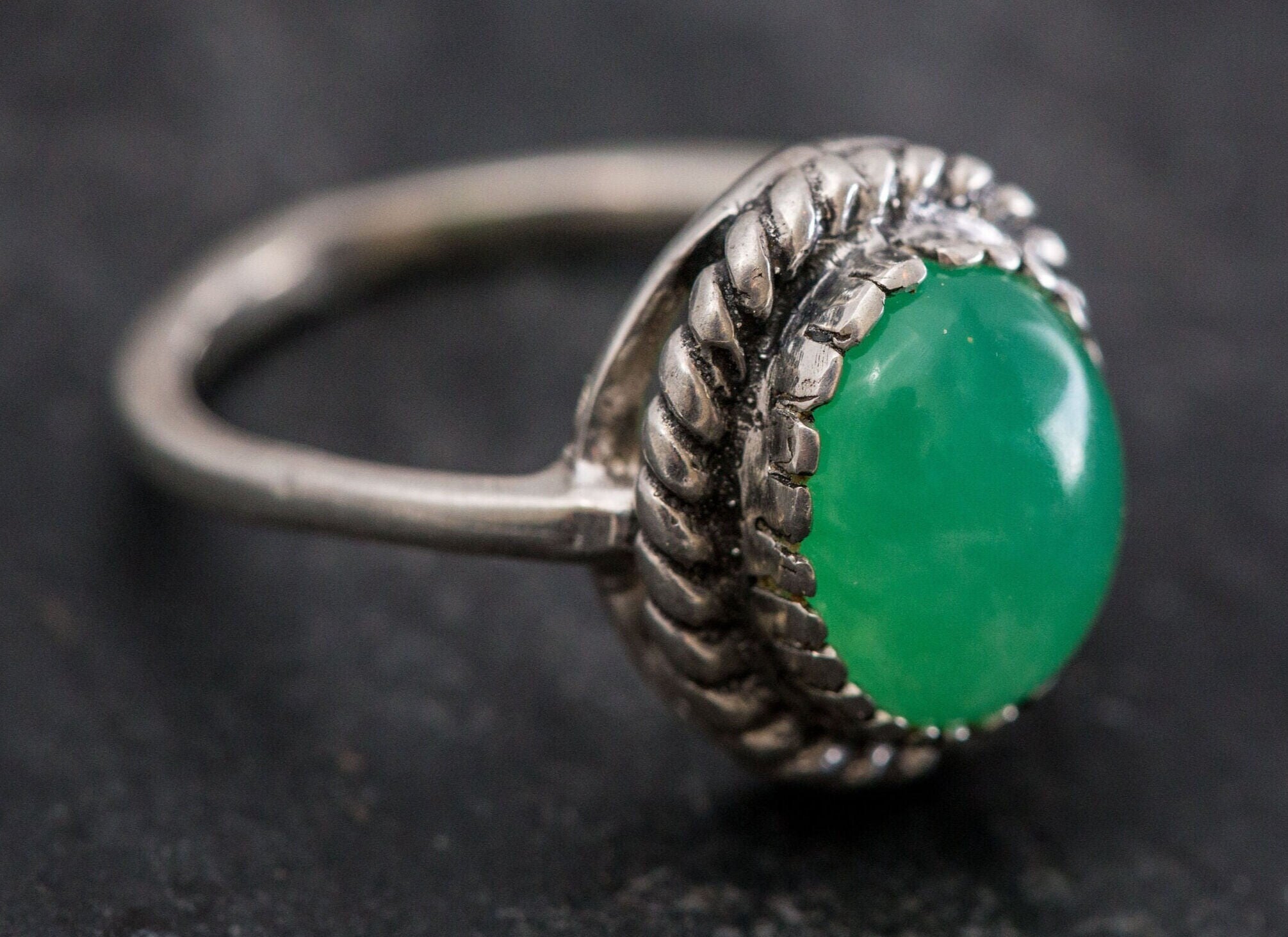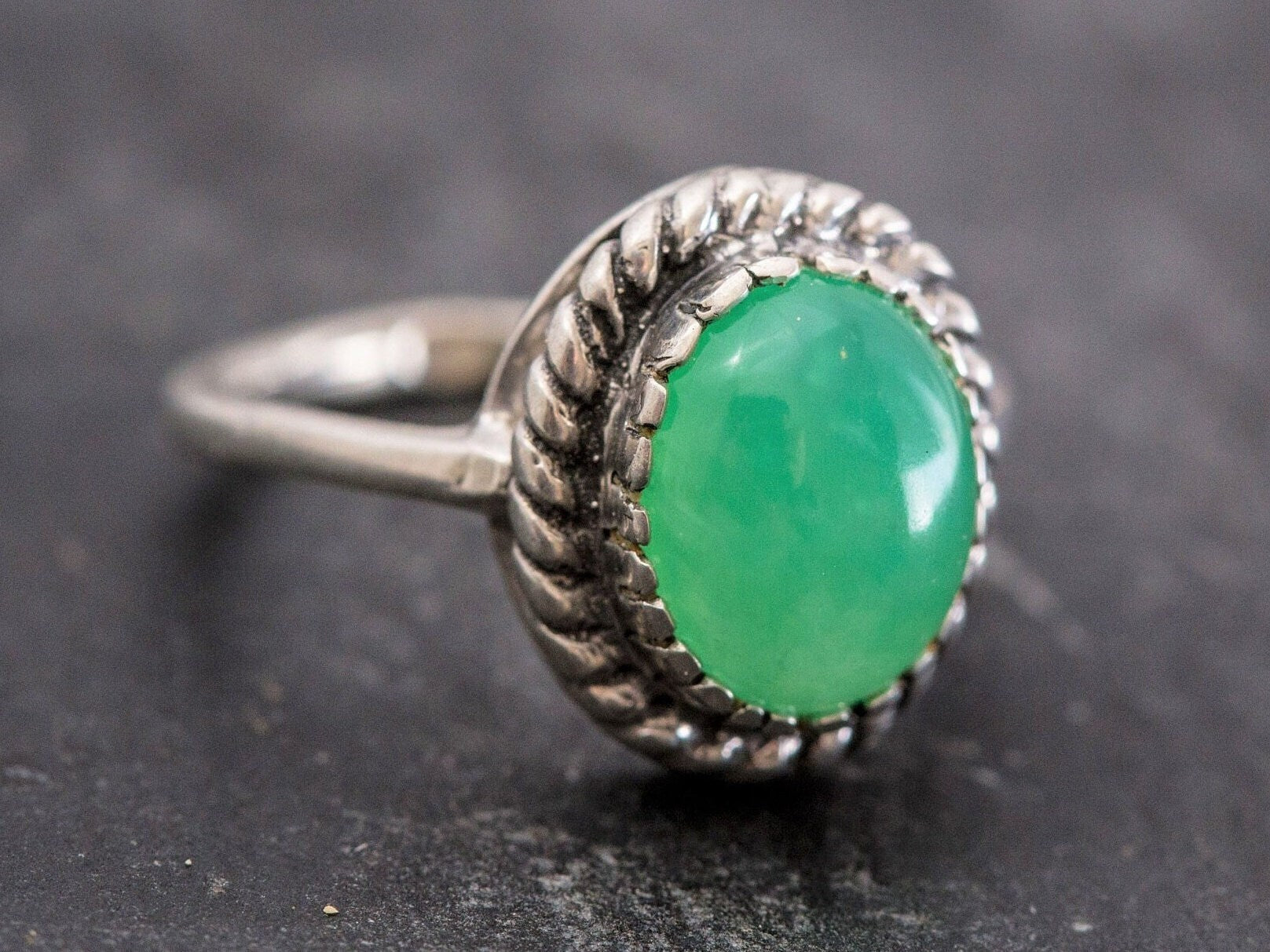 Large Chrysoprase Ring - Chrysoprase Solitaire Ring - Green Vintage Ring