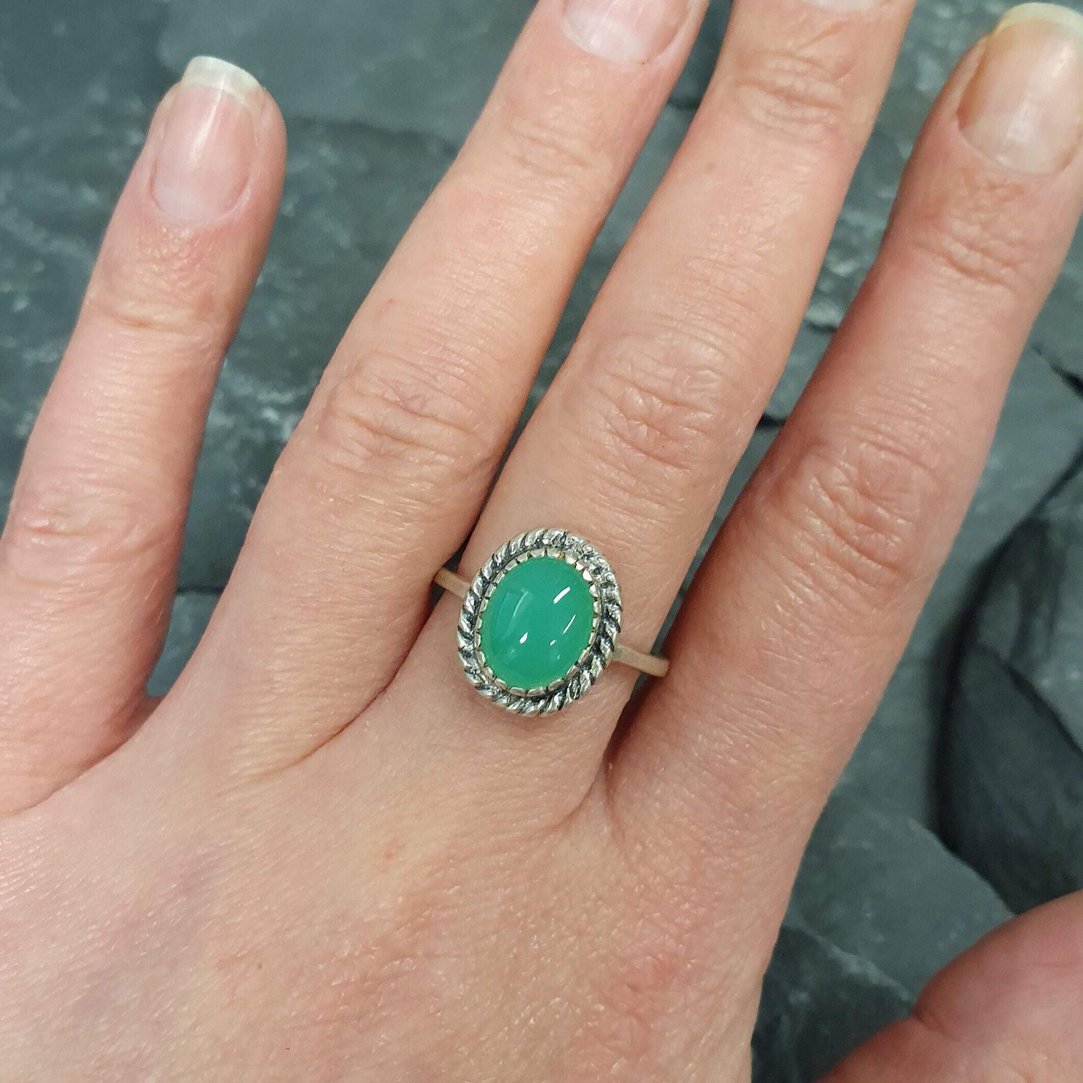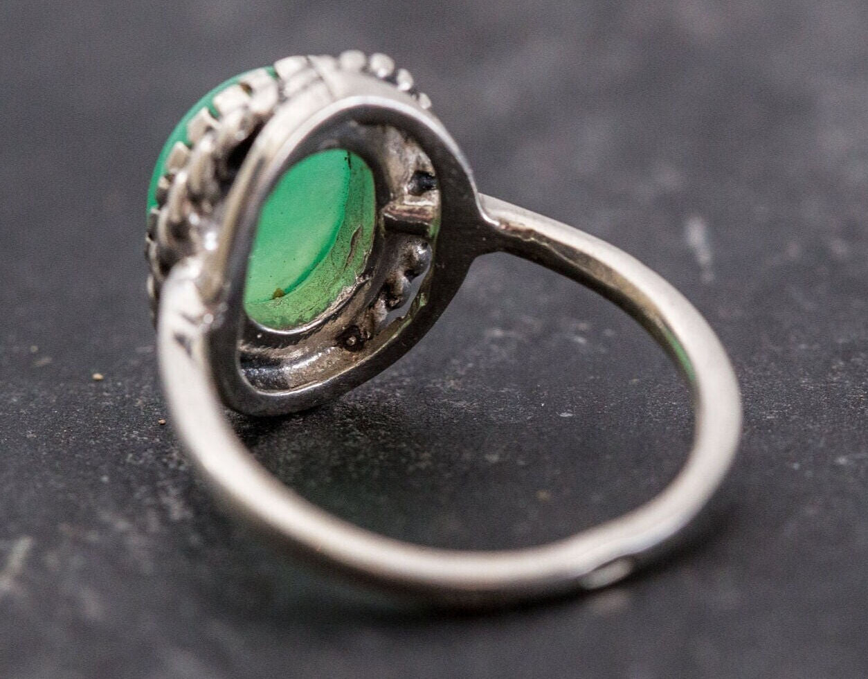 Chrysoprase Ring, Natural Chrysoprase, Vintage Ring, Green Oval Ring, May Birthstone, Antique Ring Style, Unique Ring, Solid Silver Ring