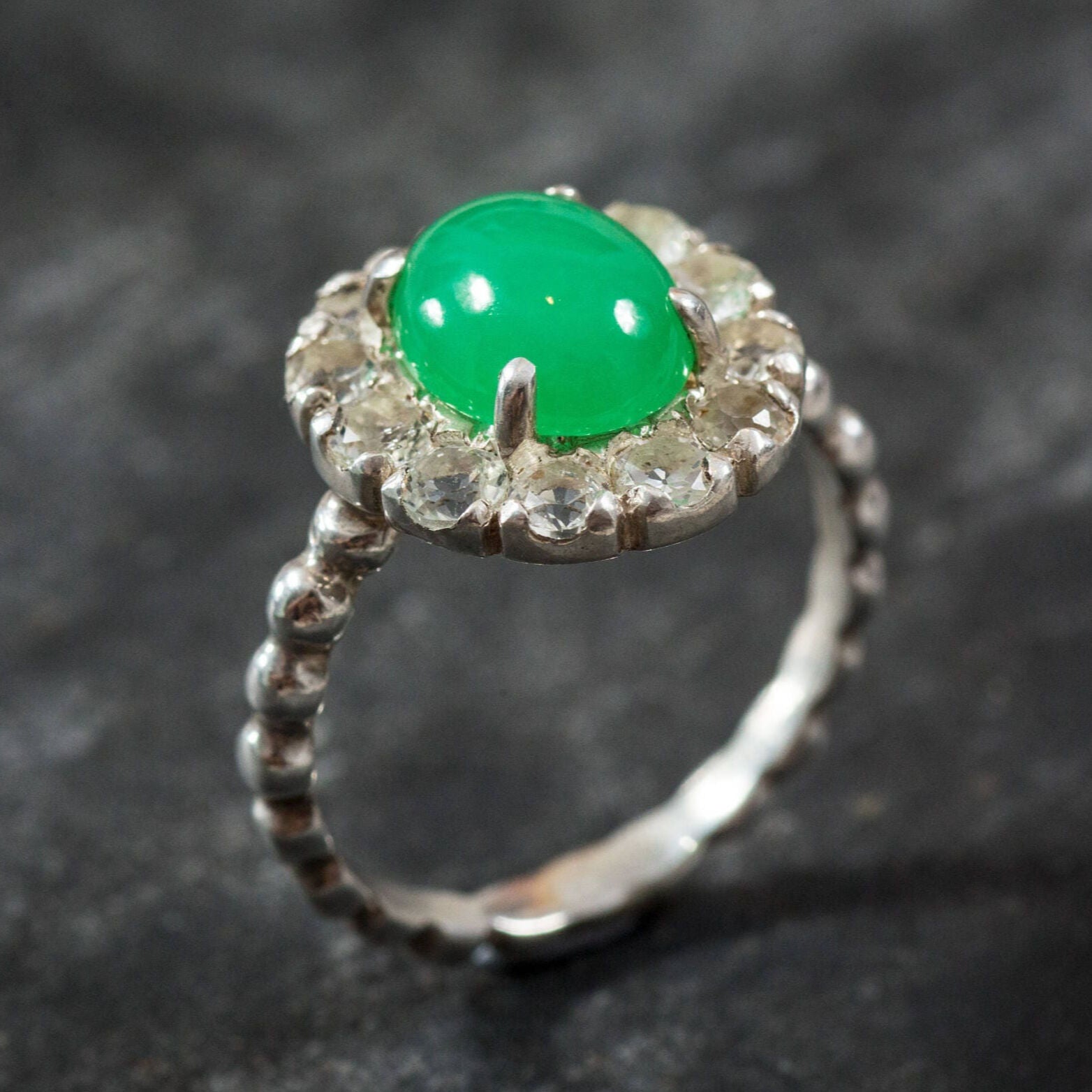 Chrysoprase Ring, Real Chrysoprase, Large Chrysoprase, Natural Topaz, White Topaz Ring, Rare Ring, Vintage Silver Ring, Chrysoprase, Topaz