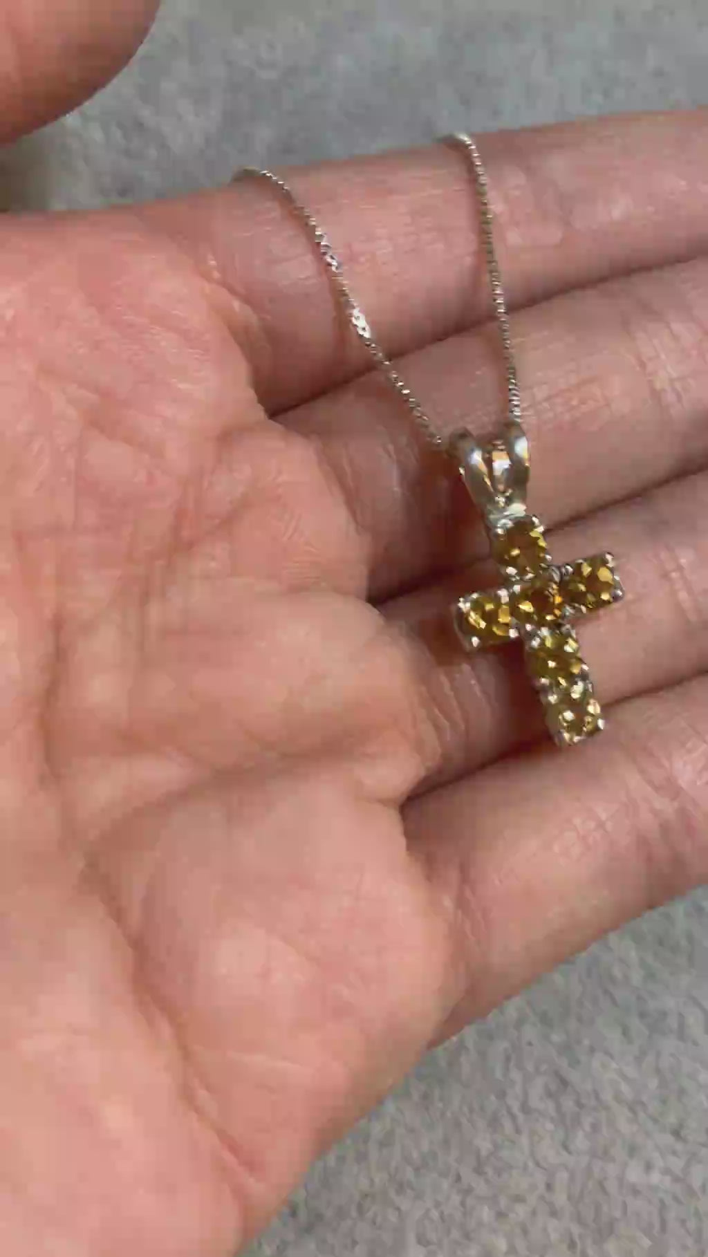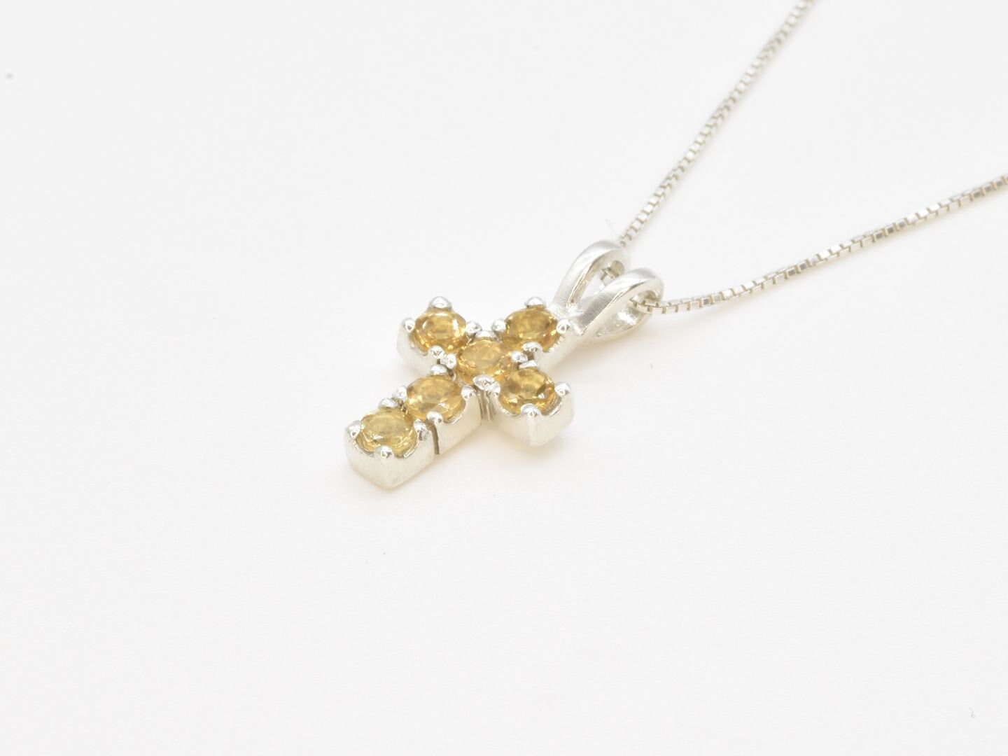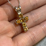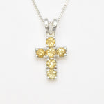 Citrine Cross Pendant set with a Natural Citrine in a diamond cut, flawless clarity & natural yellow color, at 3mm size each (1 Cts combined) from Brazil.