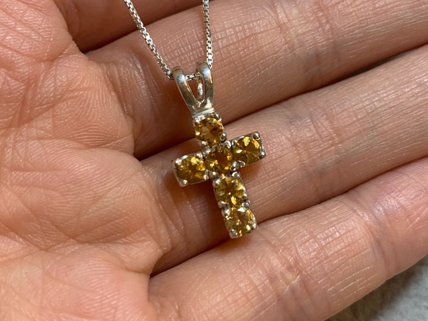 Citrine Cross Pendant - Real Citrine Pendant, Christian Yellow Pendant