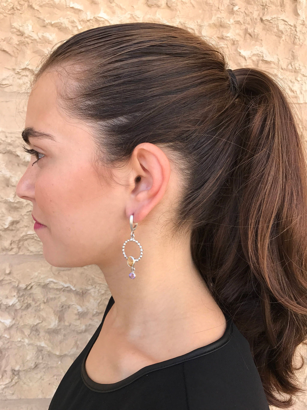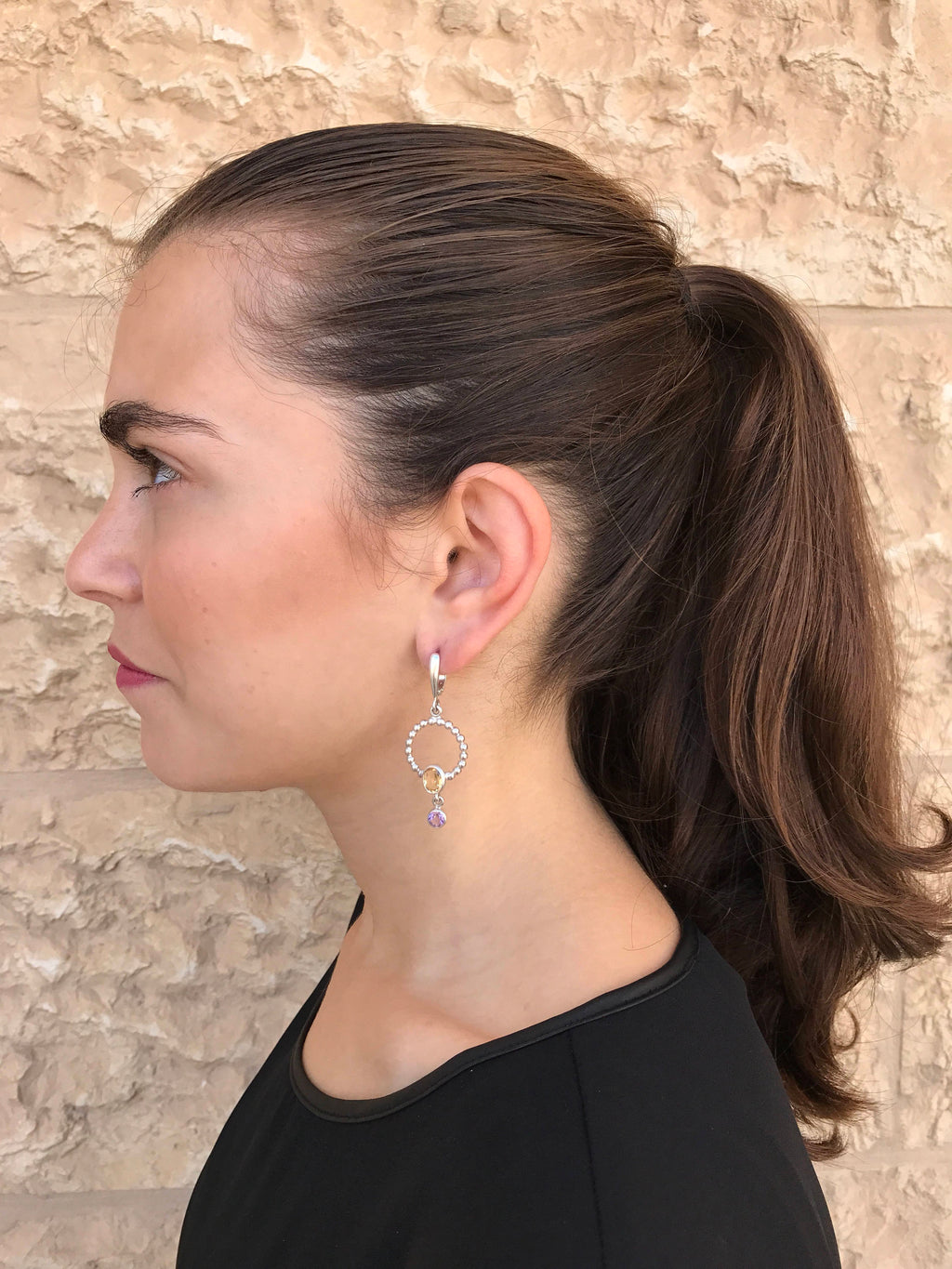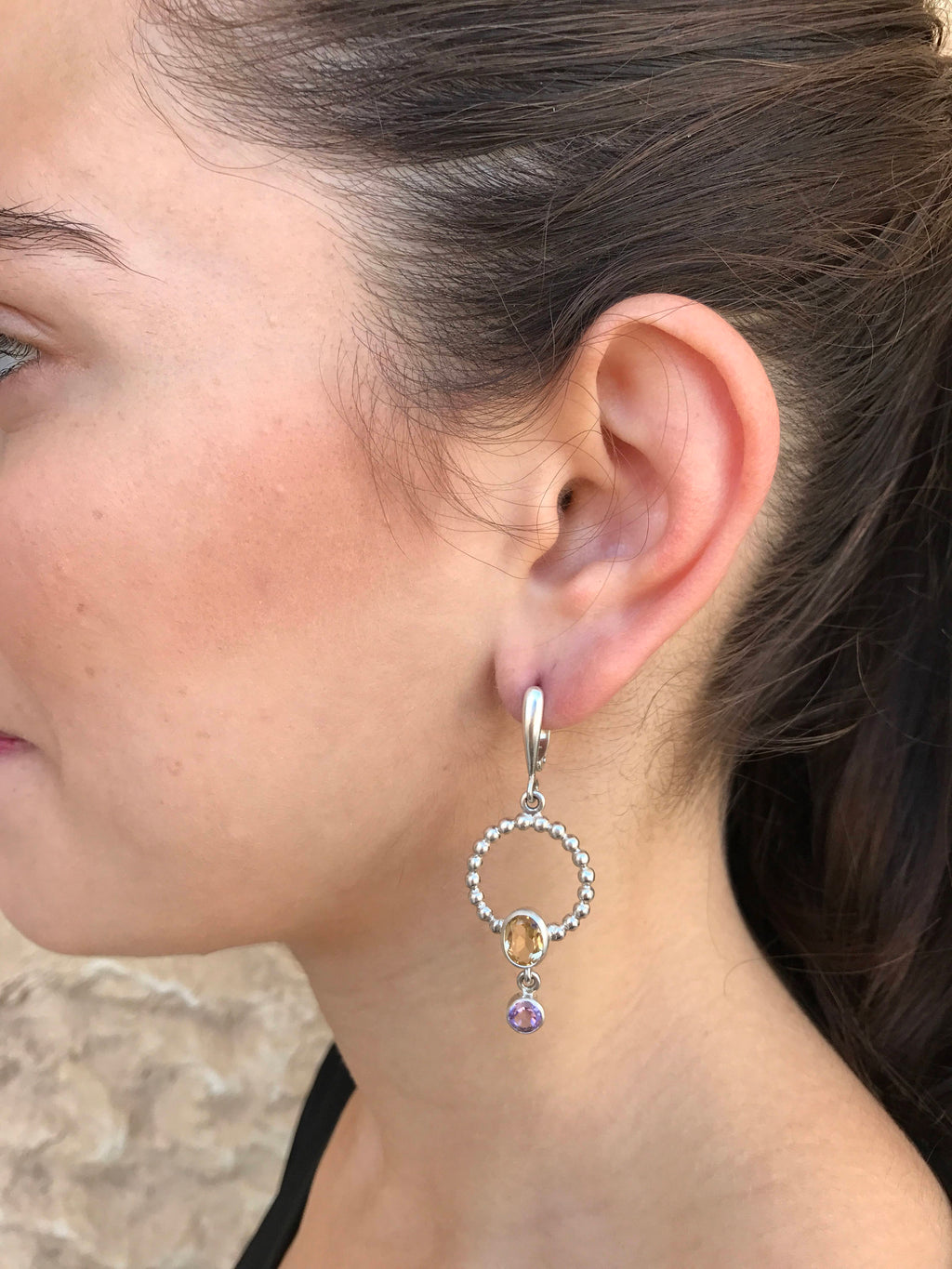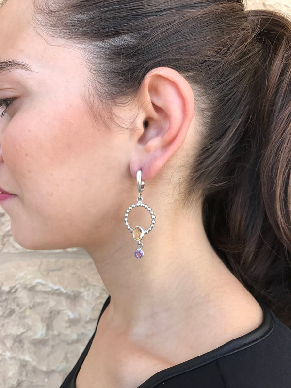 Artistic Citrine Circle Long Earrings, Real Citrine Earrings, Amethyst Gemstone Earrings