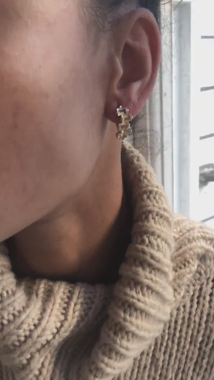 Long Citrine Earrings - Yellow Baguette Half Hoop Earrings, November Birthstone Earrings