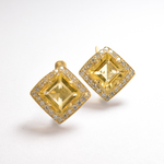 Vintage Citrine Earrings set with a Natural Citrine in a perfect diamond cut & flawless clarity, at 8x8mm each (6 Cts a pair) from Brazil.