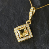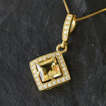 Vintage Citrine Pendant set with a Natural Citrine in a flawless clarity & stunning yellow color in a perfect diamond Cut, at 8x8mm (3 Cts) with CZ Diamonds.