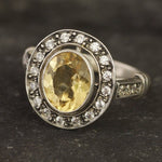 Citrine Ring - Yellow Oval Ring - Vintage Halo Ring