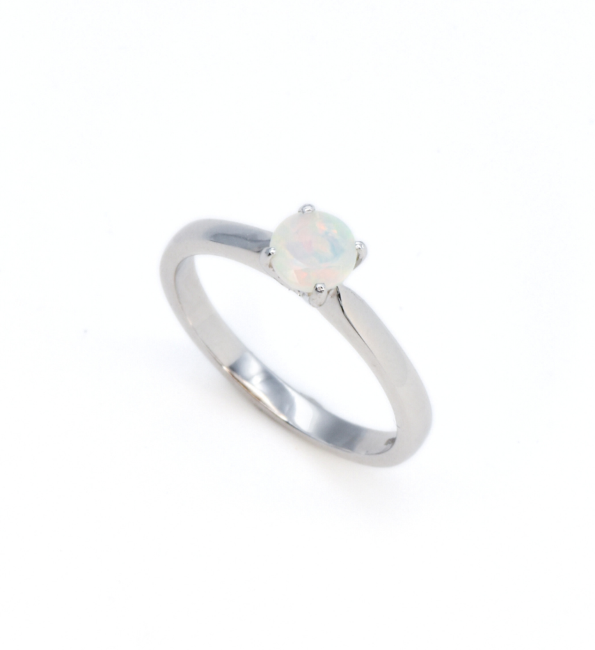 Certified Opal Ring set with Fire Opal, size 5 millimeters diameter, 0.46 Carats.