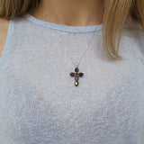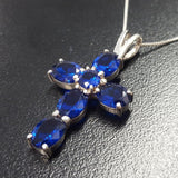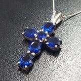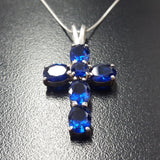 Cross Sapphire Necklace set with Created Sapphire in a top grade & deep blue color, at 5mm each (0.6 Cts combined).