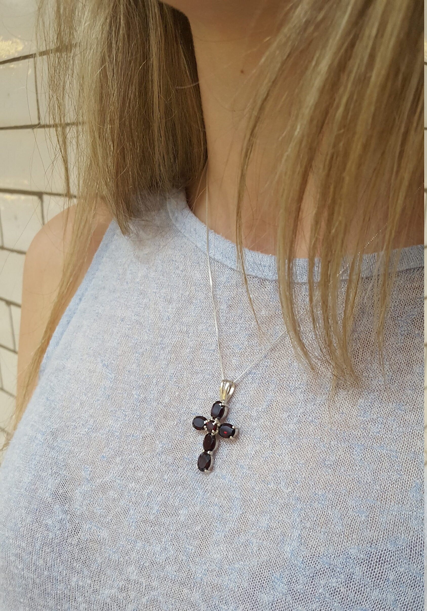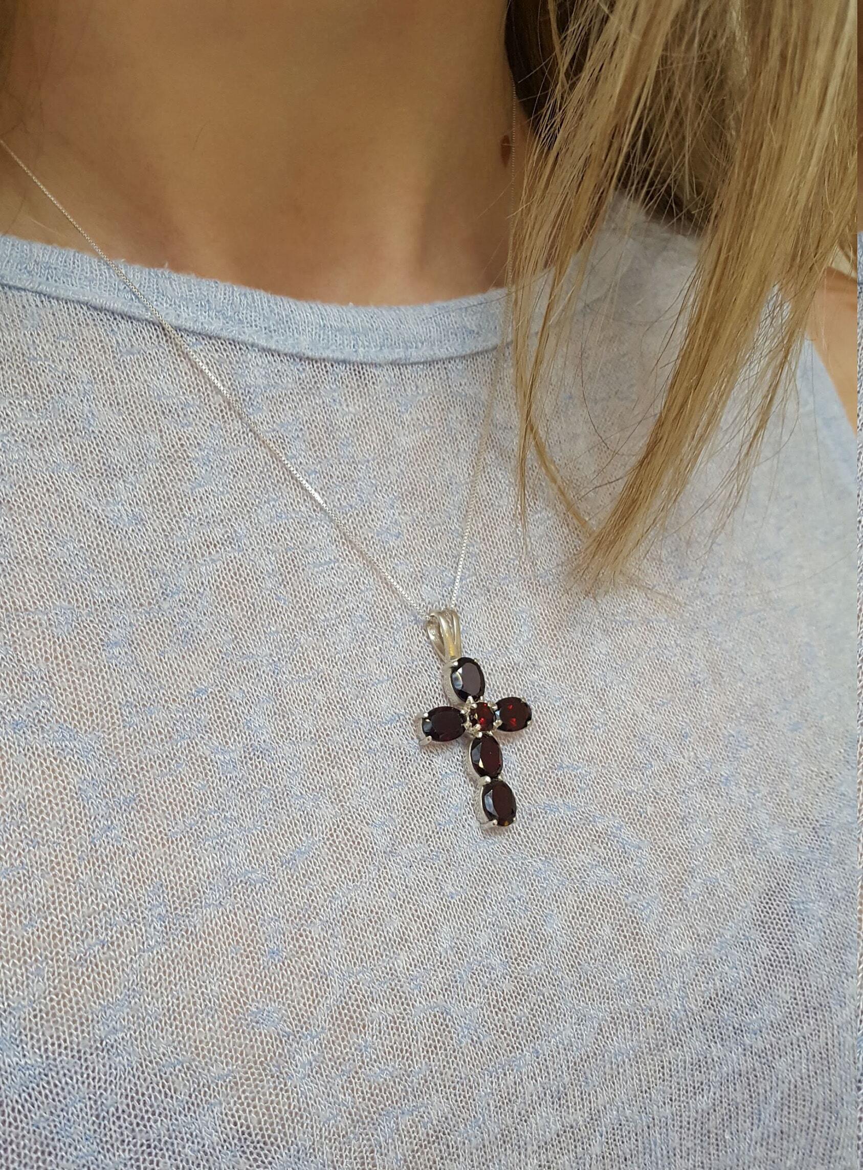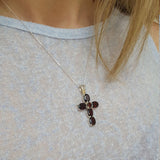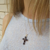 Cross Sapphire Necklace - Blue Cross Pendant - Silver Cross Necklace