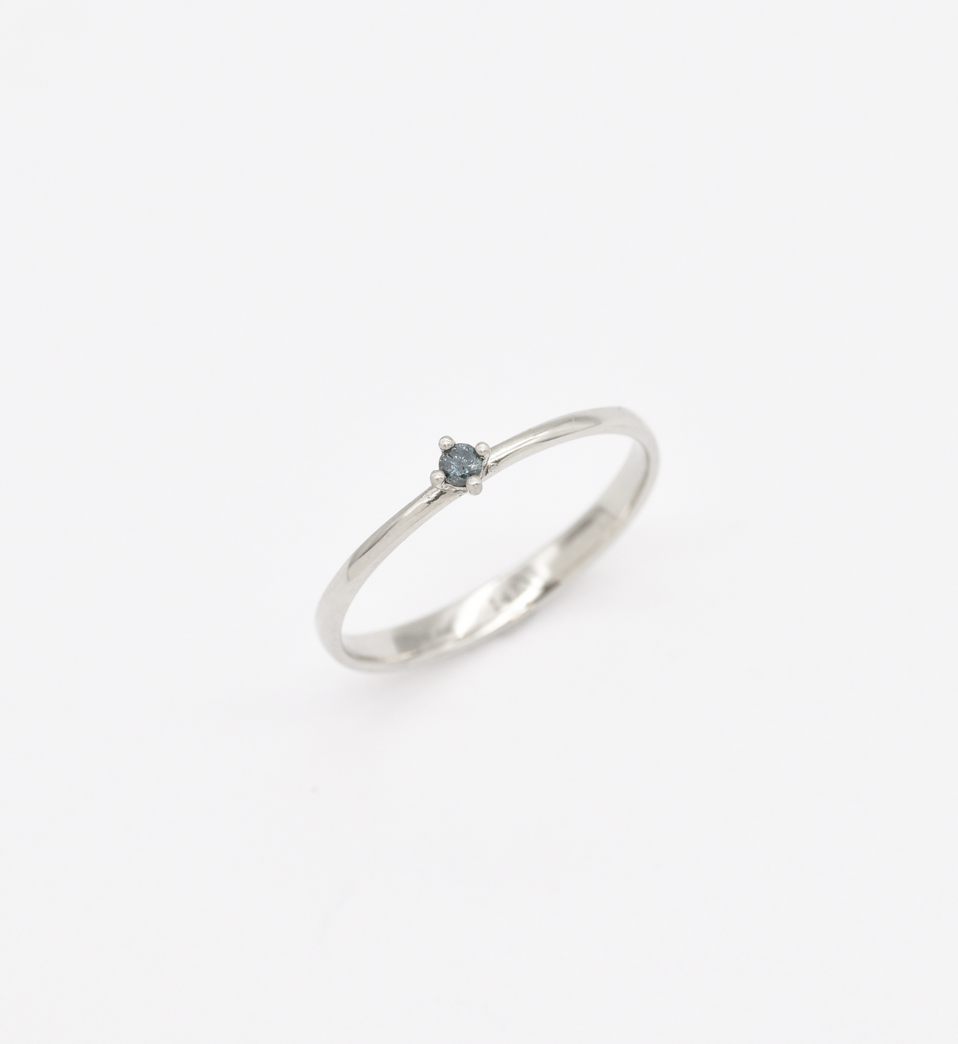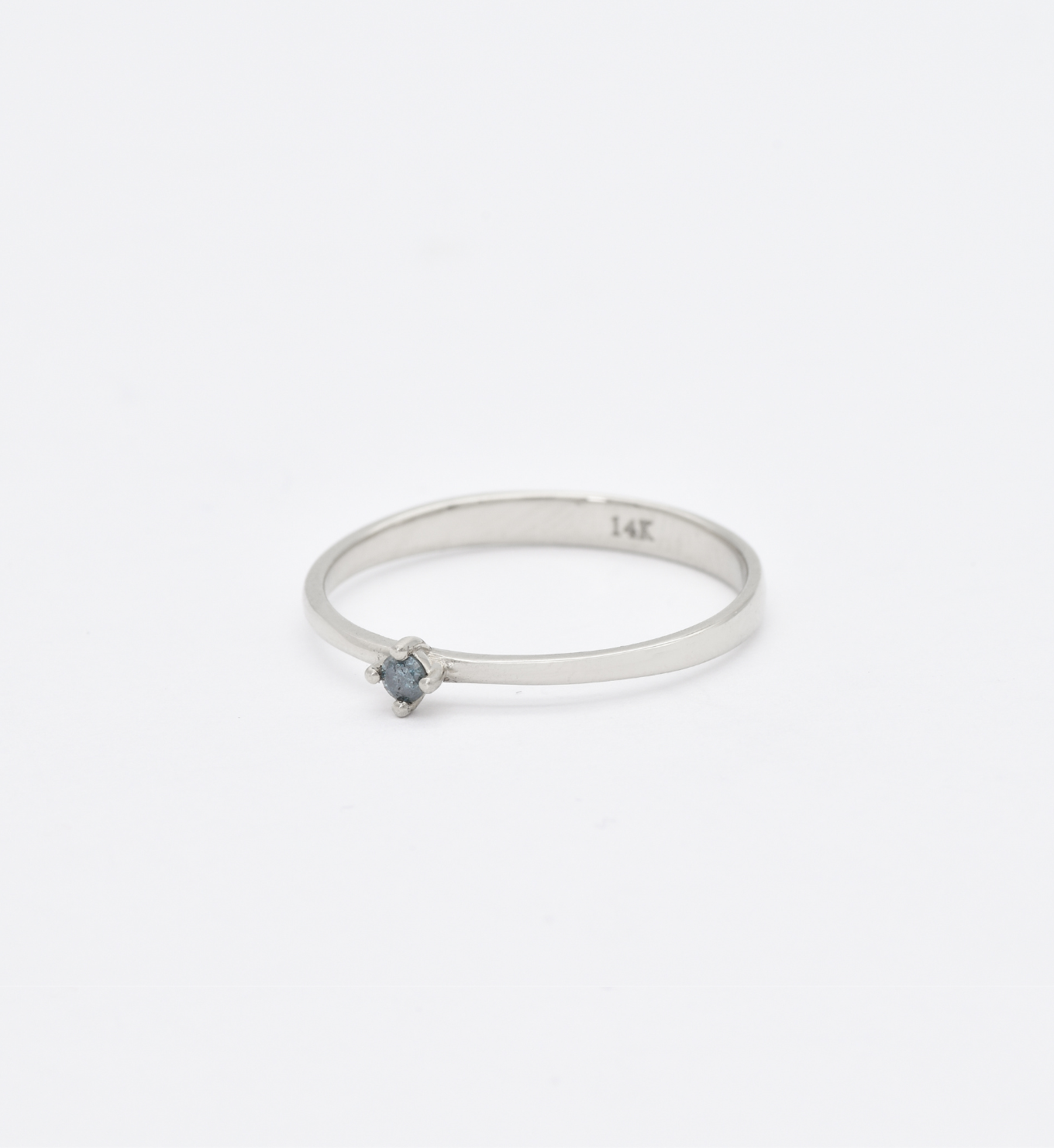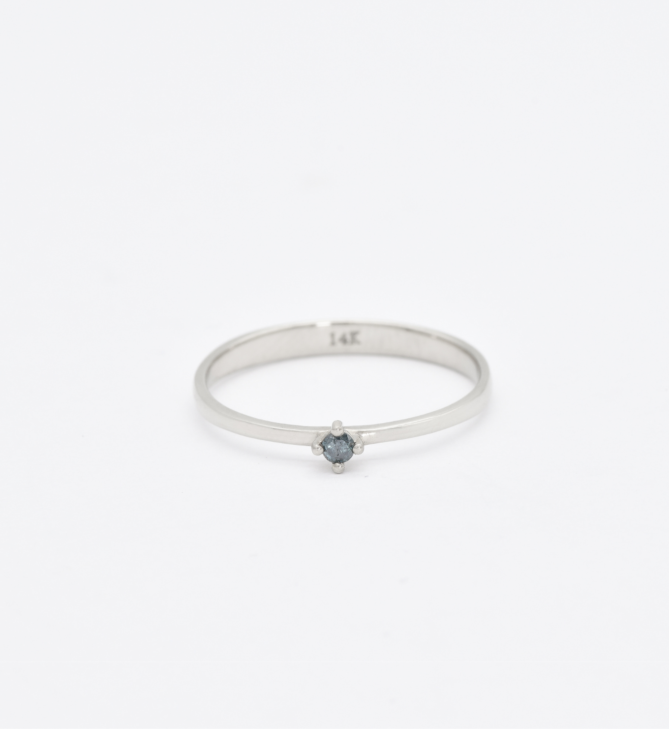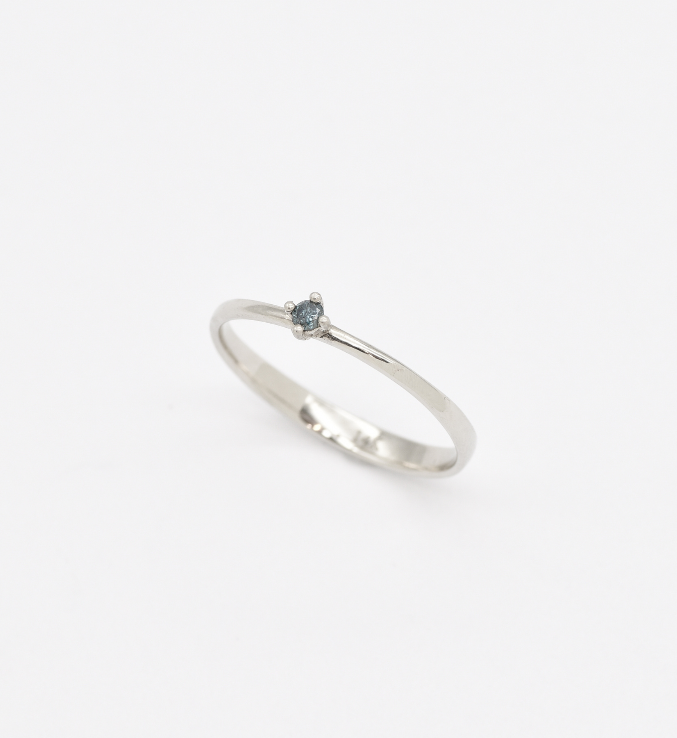 Blue Diamond Ring - Dainty Blue Diamond Ring - Real 14k White Gold Ring