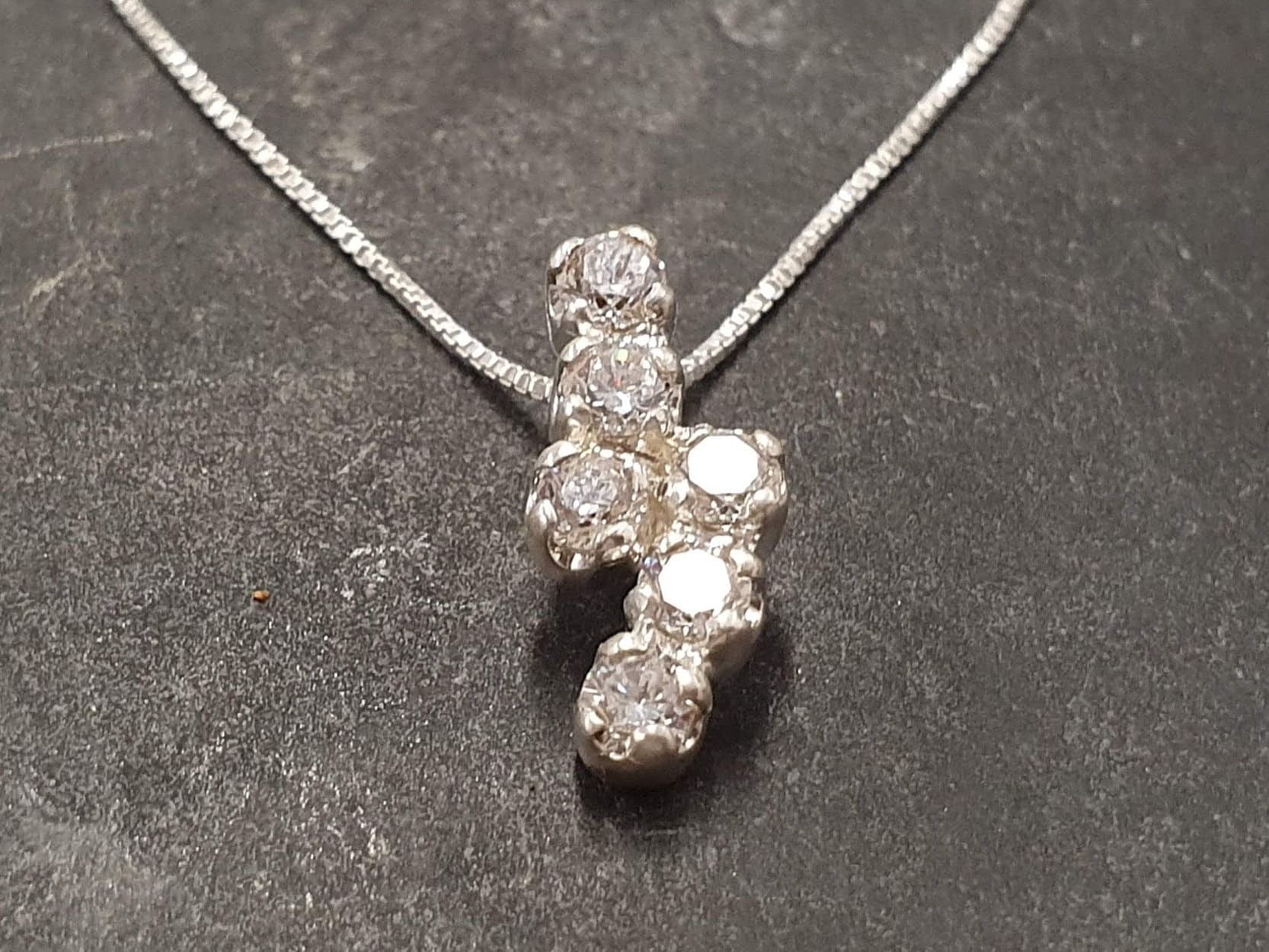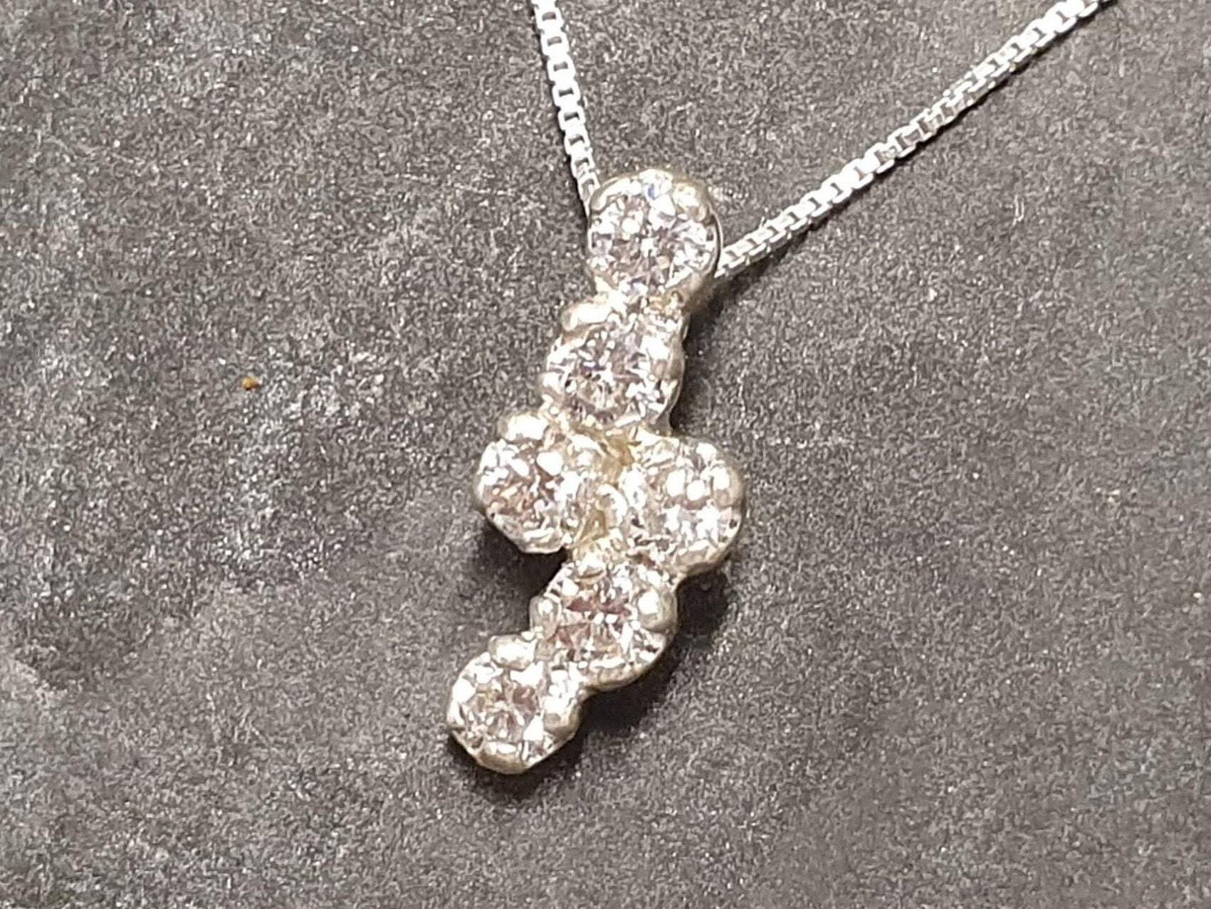 Dainty Diamond Pendant, Created CZ Diamond, Vintage Pendant, Dainty Necklace, Sparkly Pendant, Sterling Silver Pendant, Diamond Necklace(1)