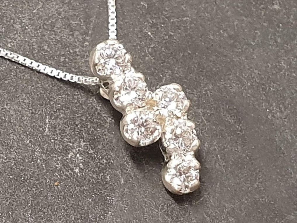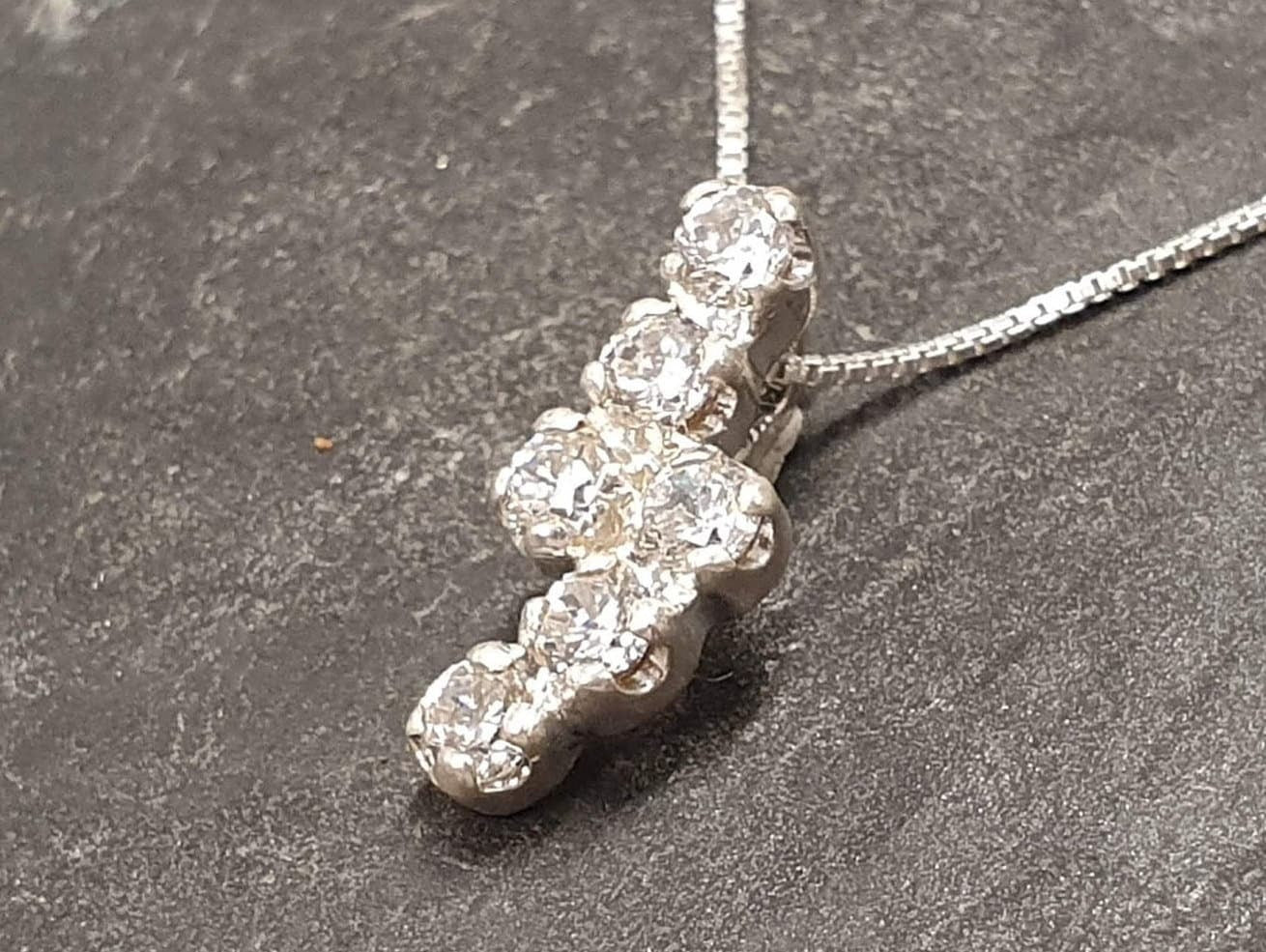 Dainty Diamond Pendant - Vintage Diamond Necklace - Silver Sparkly Necklace