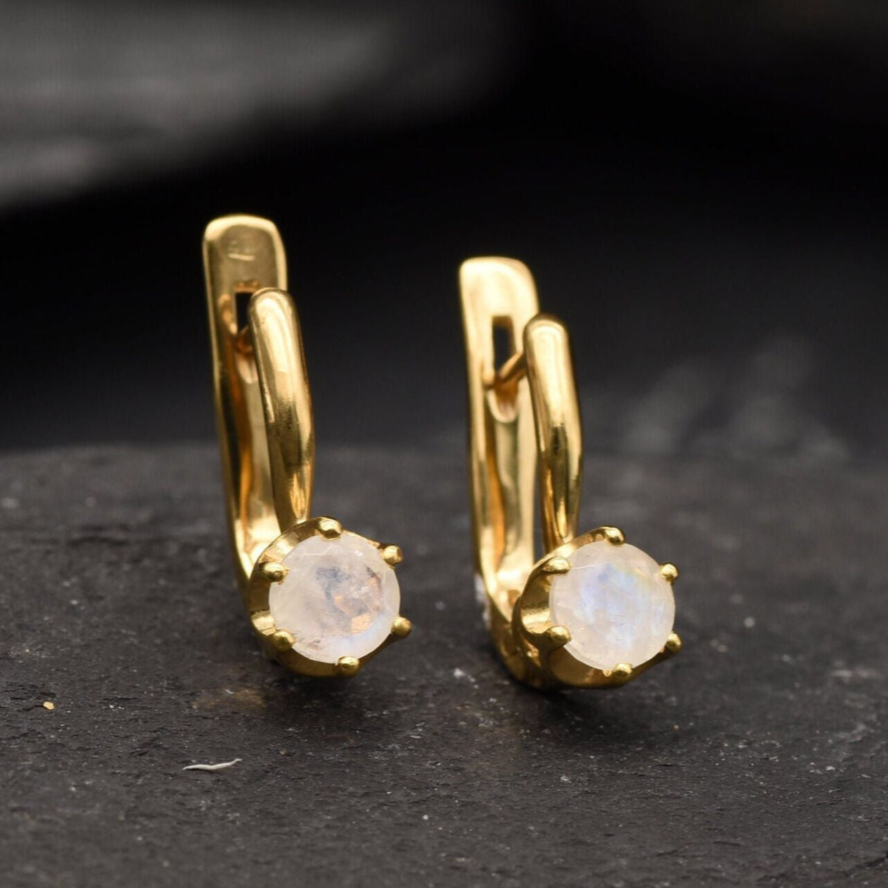 Dainty Moonstone Earrings, Rainbow Moonstone, Natural Moonstone, June Birthstone, Solitaire Earrings, White Earrings, 925 Silver Earrings(1)
