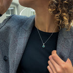 Emerald Flower Necklace set with Natural Emerald in a diamond cut & natural green color, at size 5mm (0.6 Ct) from Colombia.