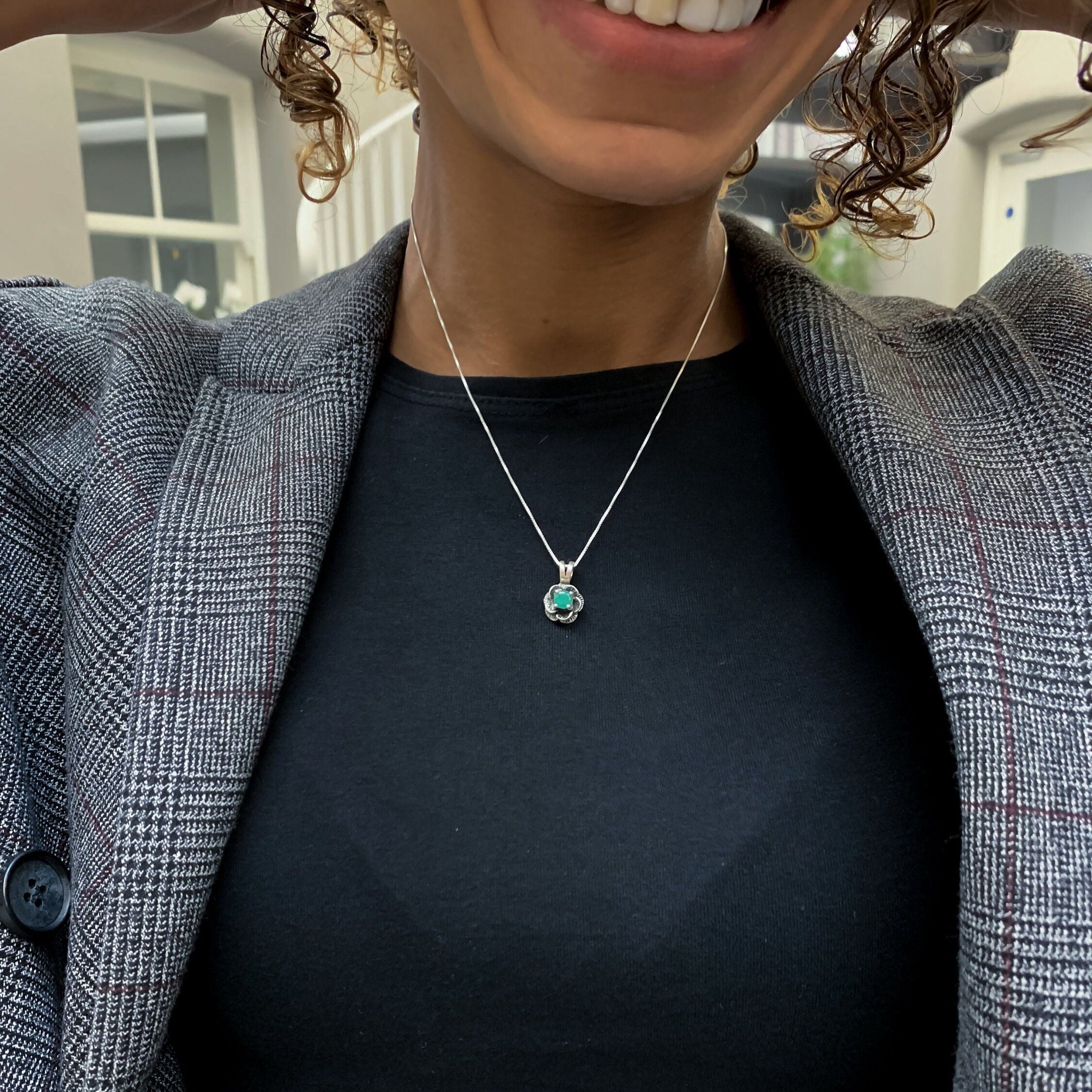 Emerald Flower Necklace - Vintage Flower Pendant - Rose Emerald Necklace