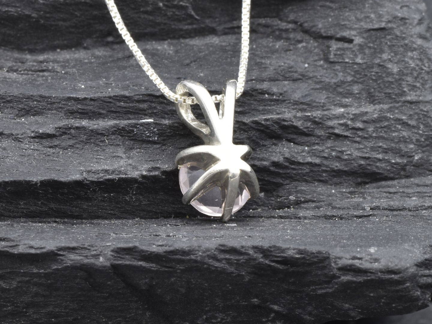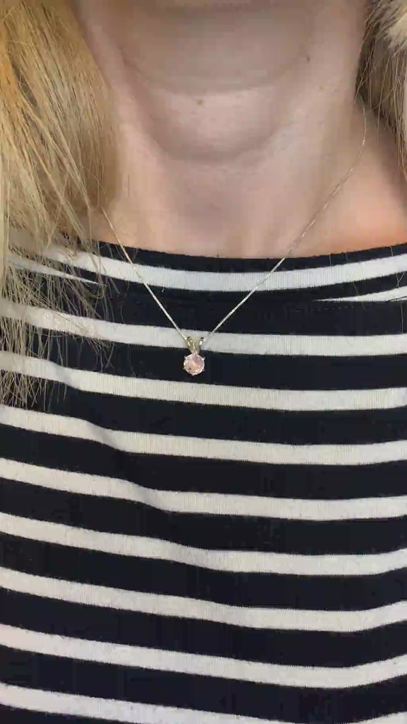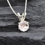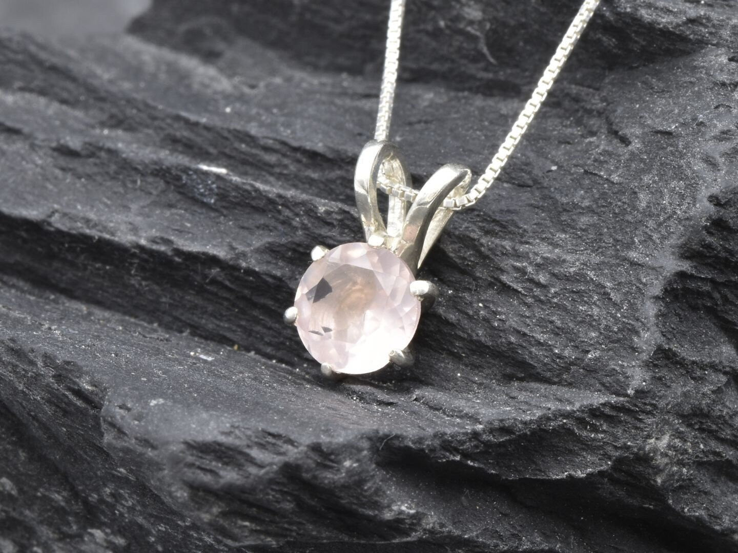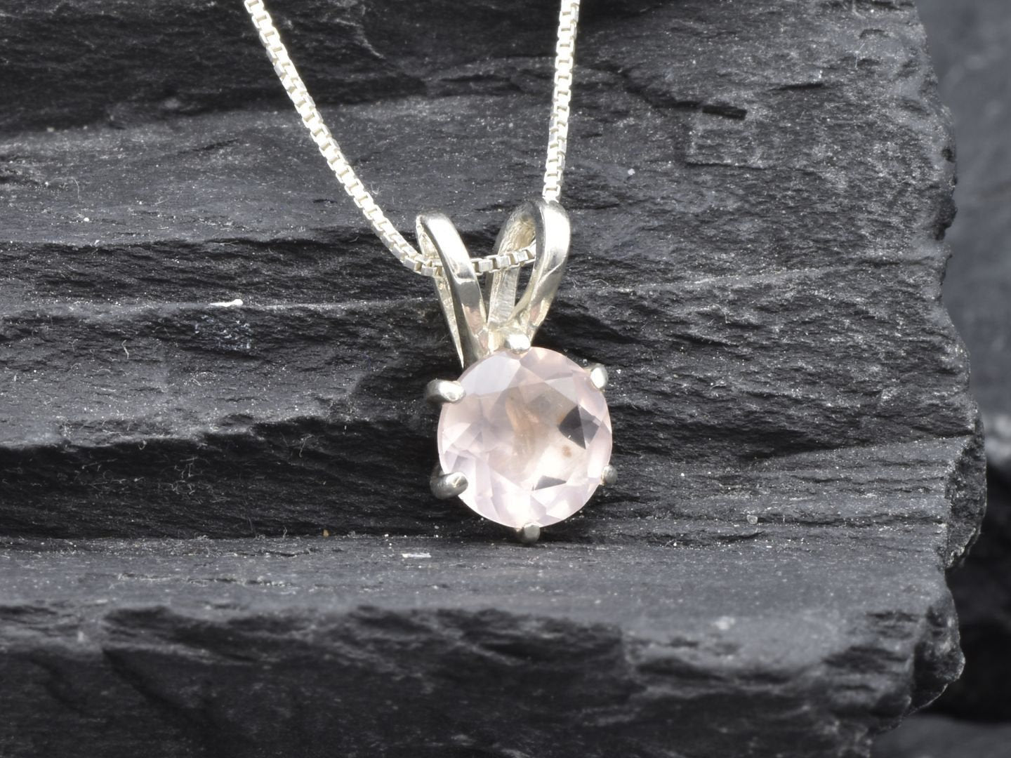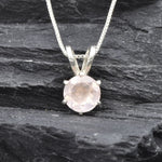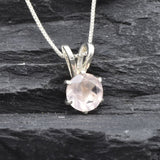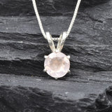 Rose Quartz Pendant set with Natural Rose Quartz in a diamond cut & smoky pink color, at 7mm diameter (1 Cts) from Brazil.