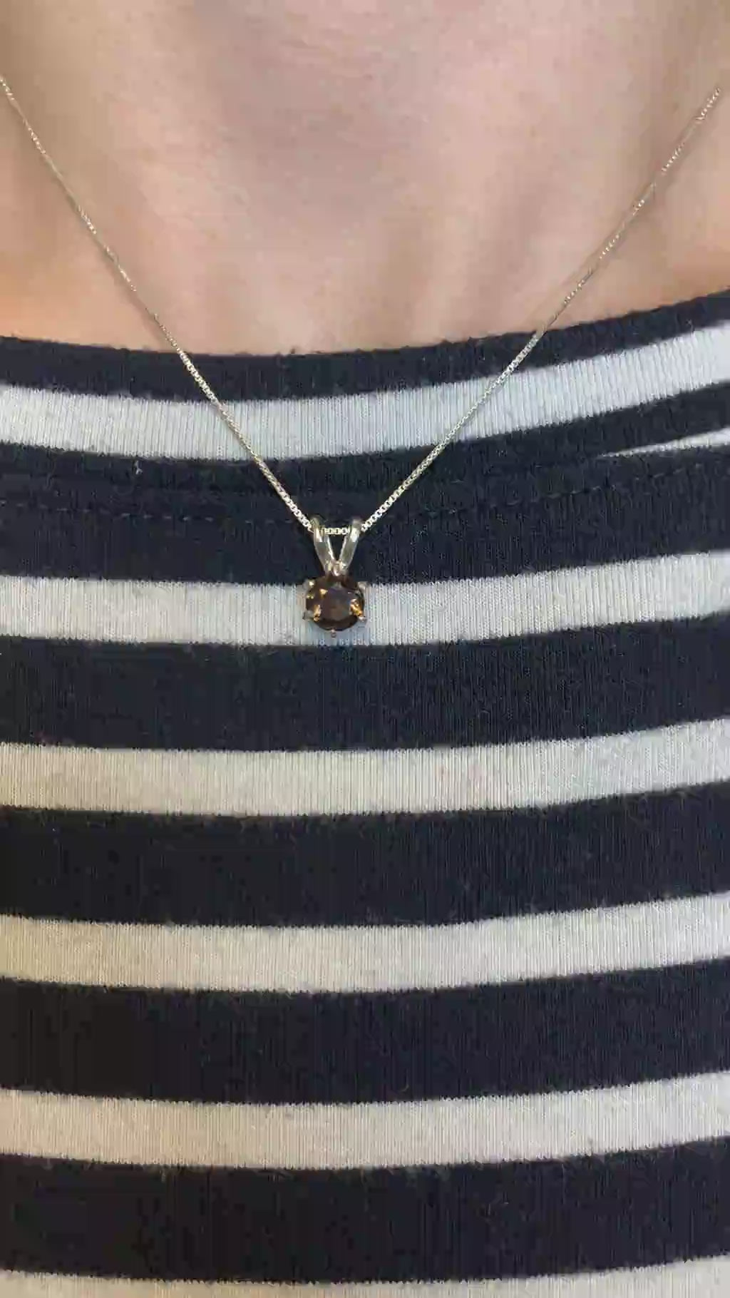 Smoky Topaz Necklace set with a Natural Smoky Topaz in a top grade & stunning brown color, at 7mm size (1 Cts), from Brazil.