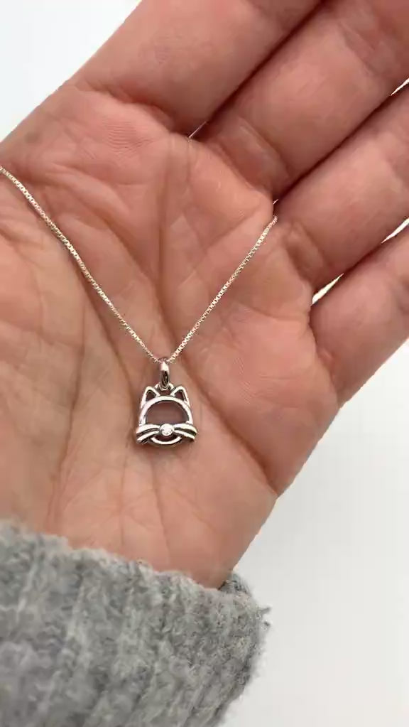 Diamond Cat Pendant - Cat Face Necklace - Cat Lover Necklace