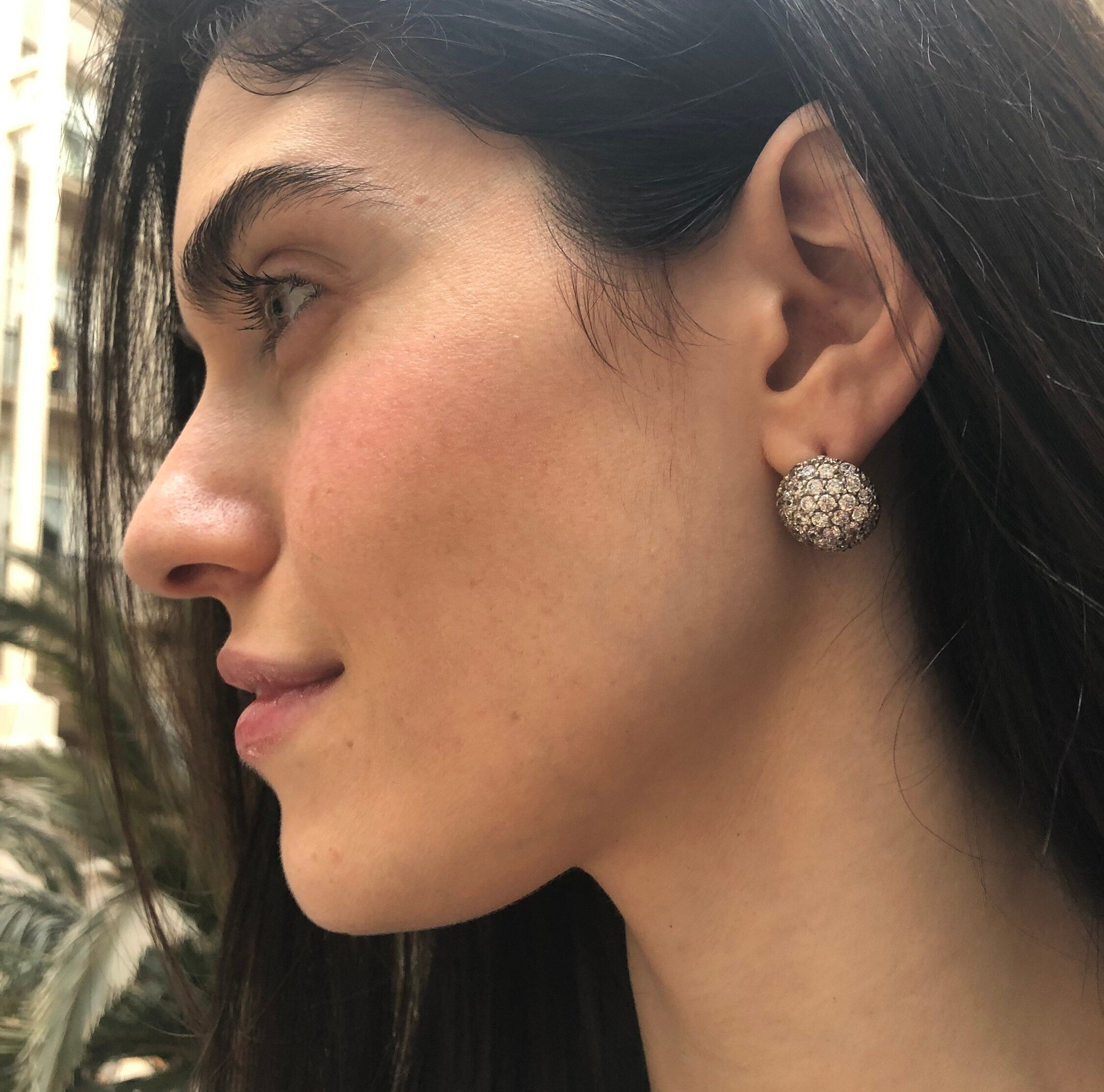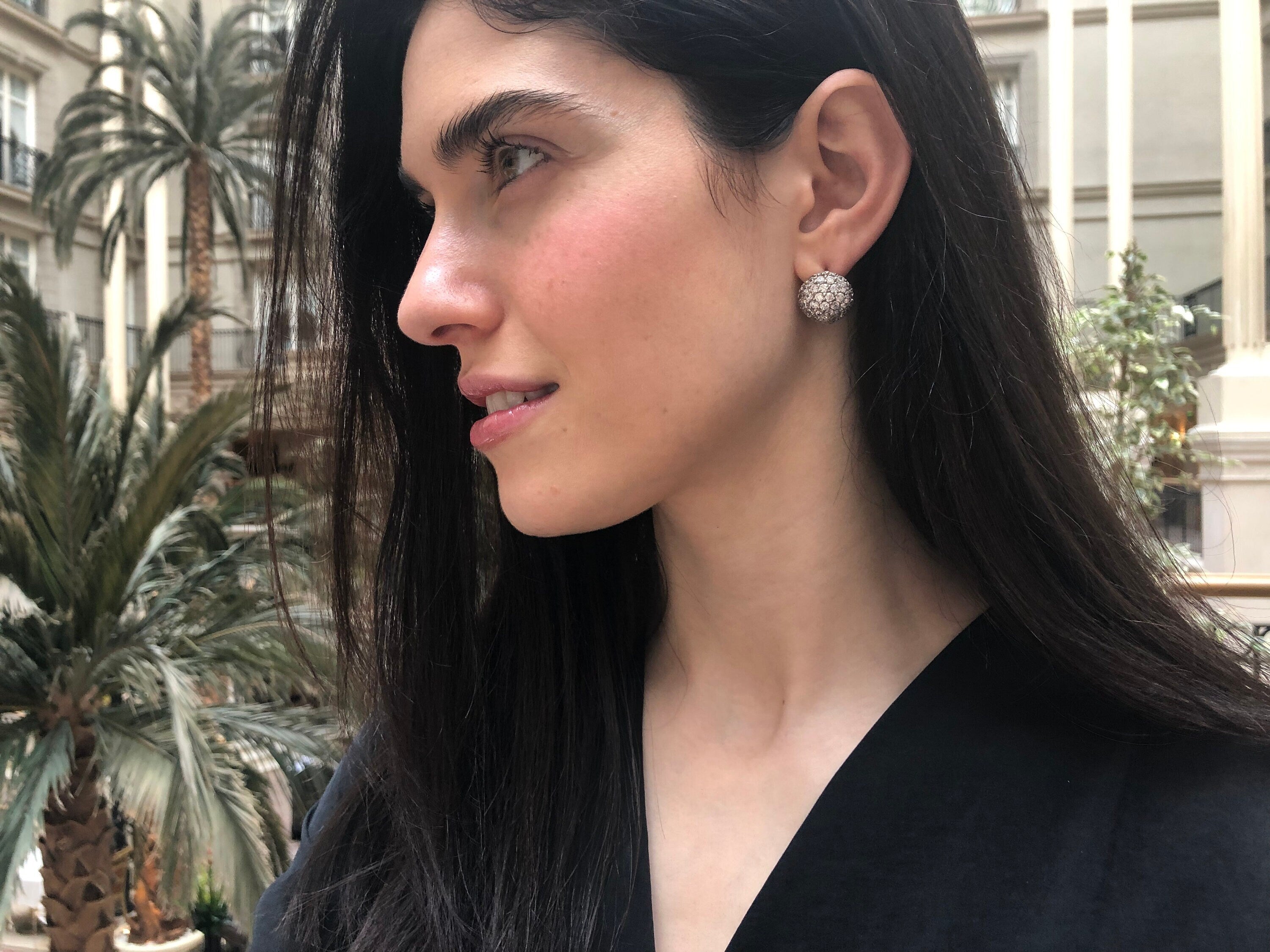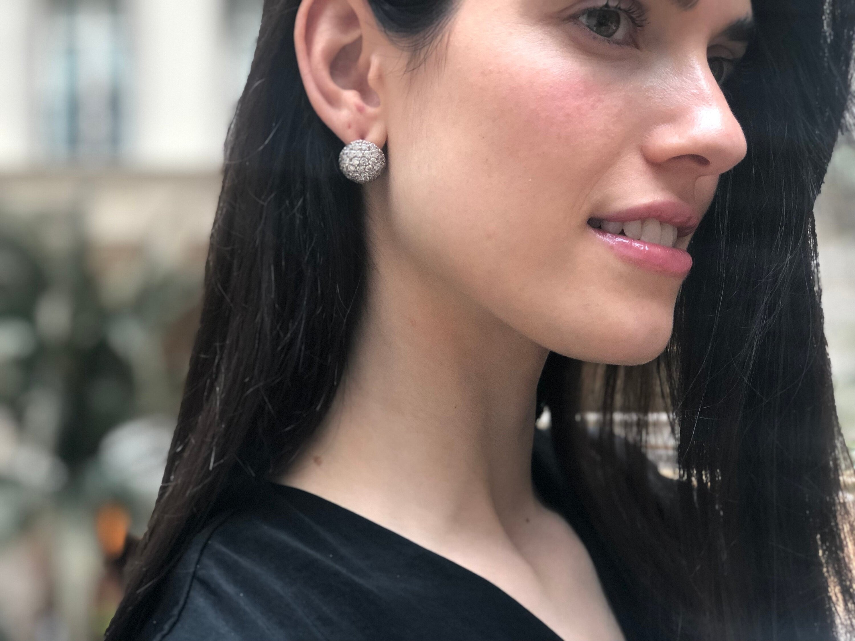 Diamond Cluster Earrings - Sparkly Sphere Earrings - Vintage Ball Earrings