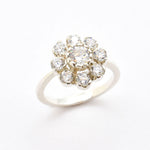 Diamond Flower Ring set with Created Diamonds in a perfect diamond cut, flawless clarity & brilliant color (2 Cts all).