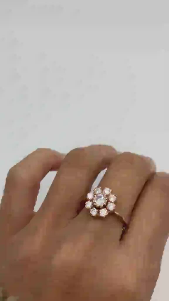 Diamond Flower Ring - Sparkly Vintage Ring - Rose Gold Diamond Band