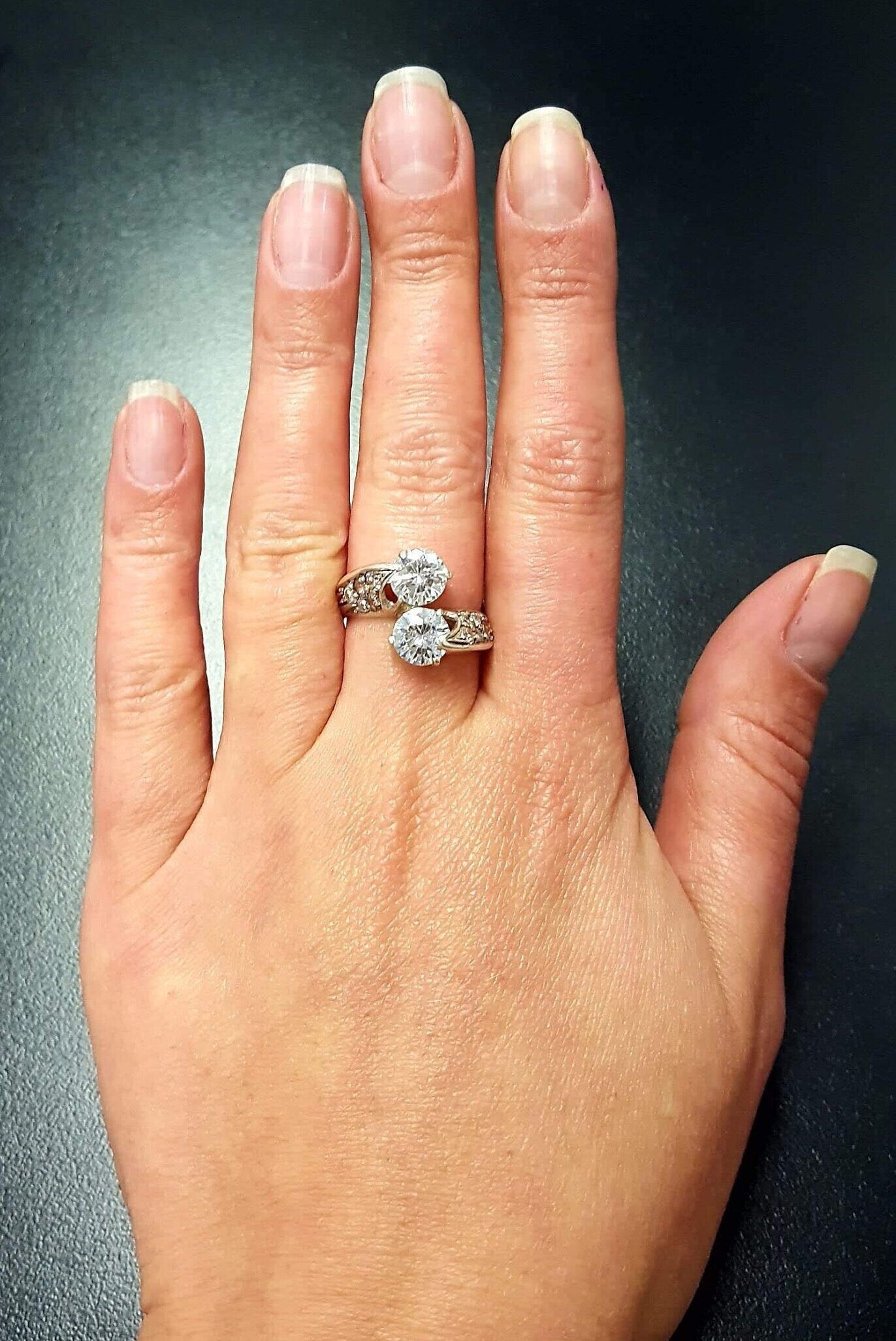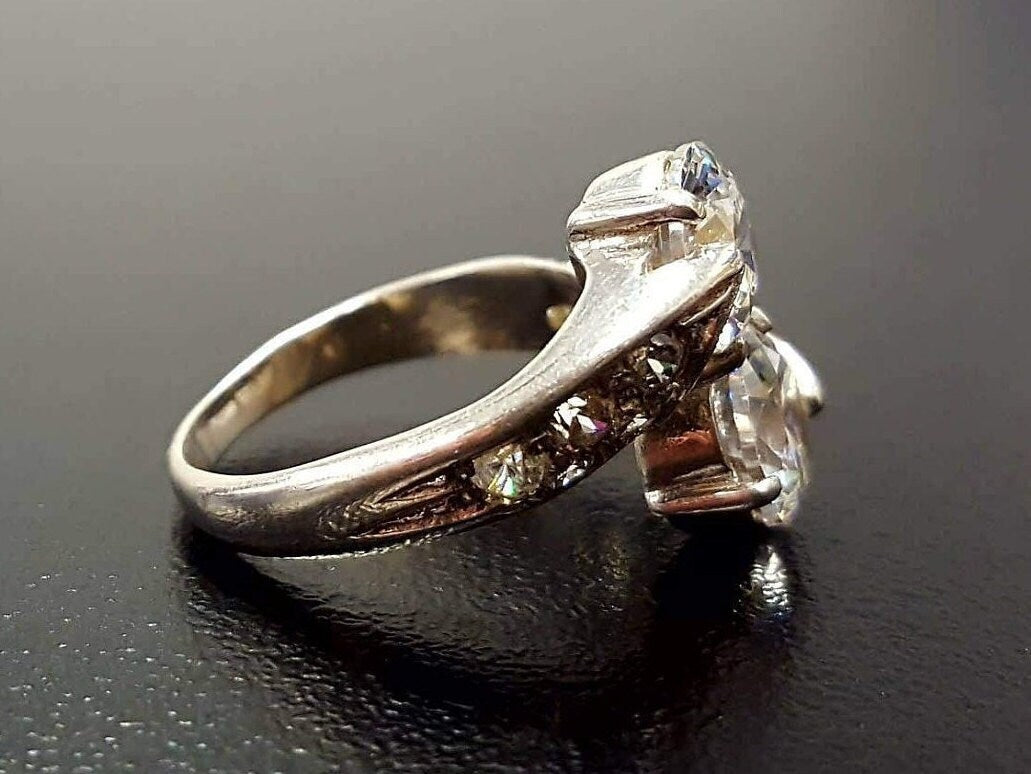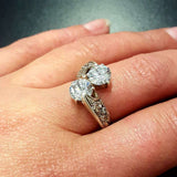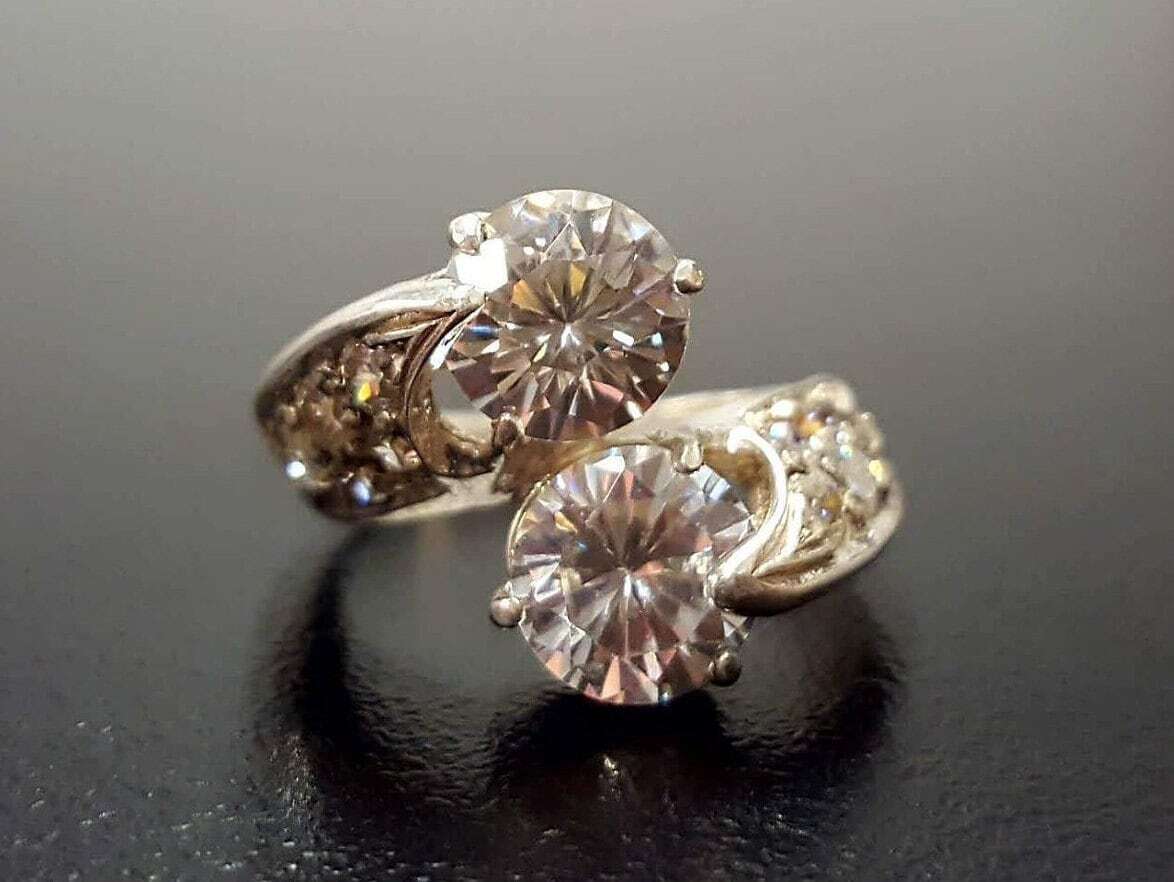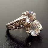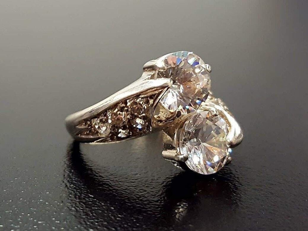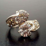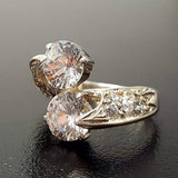 Diamond Bypass Ring - Two Stone Diamond Ring - Round Vintage Ring