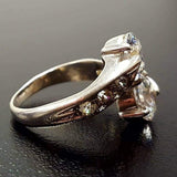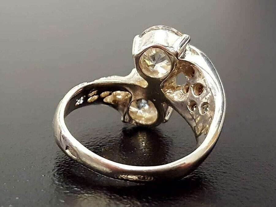 Diamond Ring, Created Diamond, Asymmetric Ring, 2 Stones Ring, Unique Diamond Ring, White Vintage Ring, Bridal Ring, Solid Silver Ring