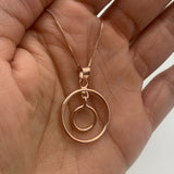 Double Circle Rose Gold Pendant - Concentric Circles Necklace, Pink Circle Pendant