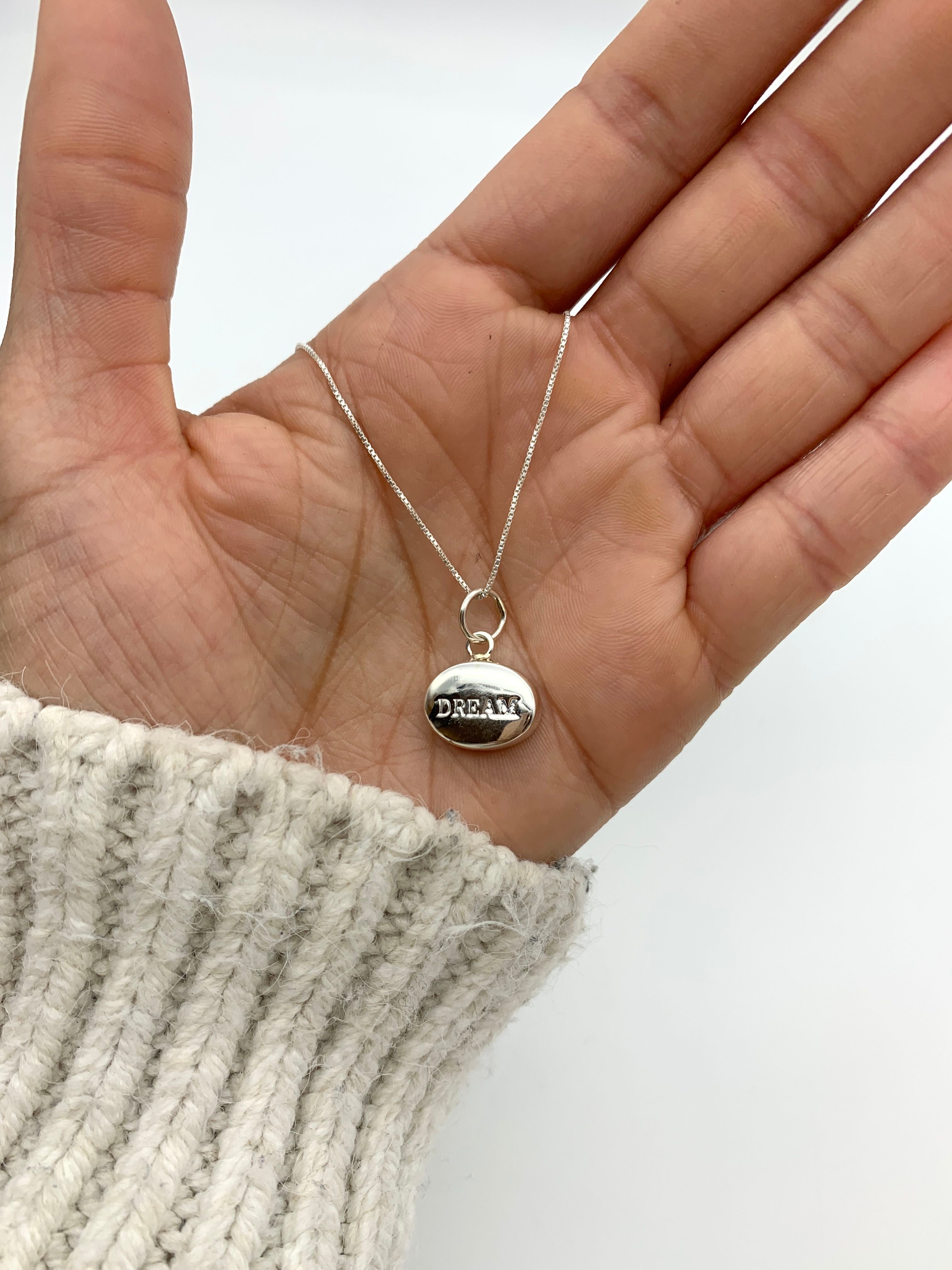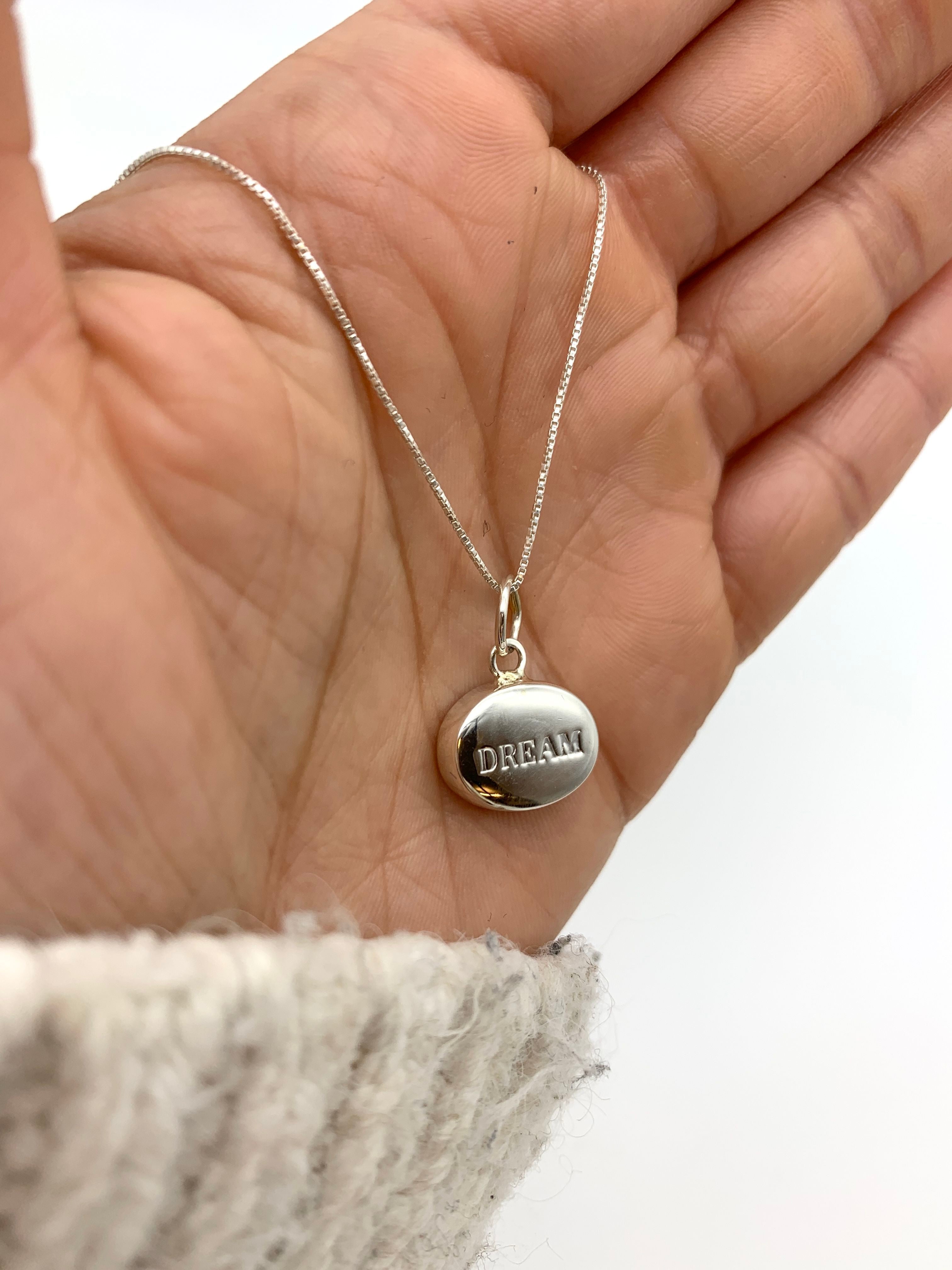 Dream Necklace - Minimalist Oval Necklace - Dream Word Pendant