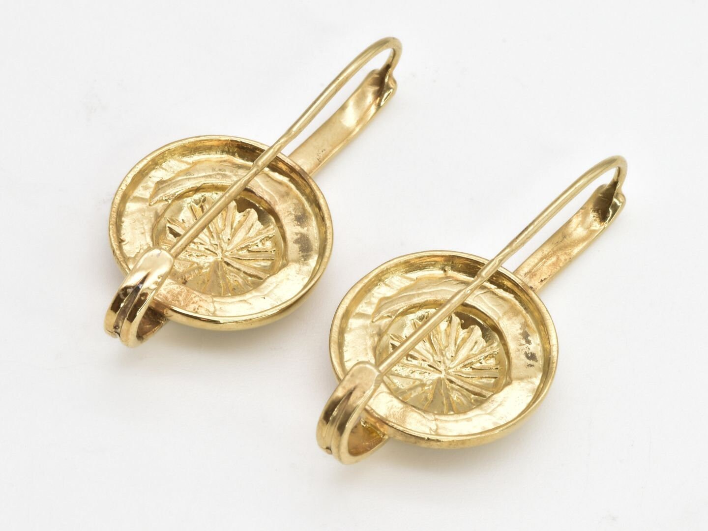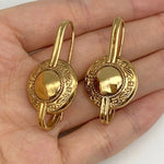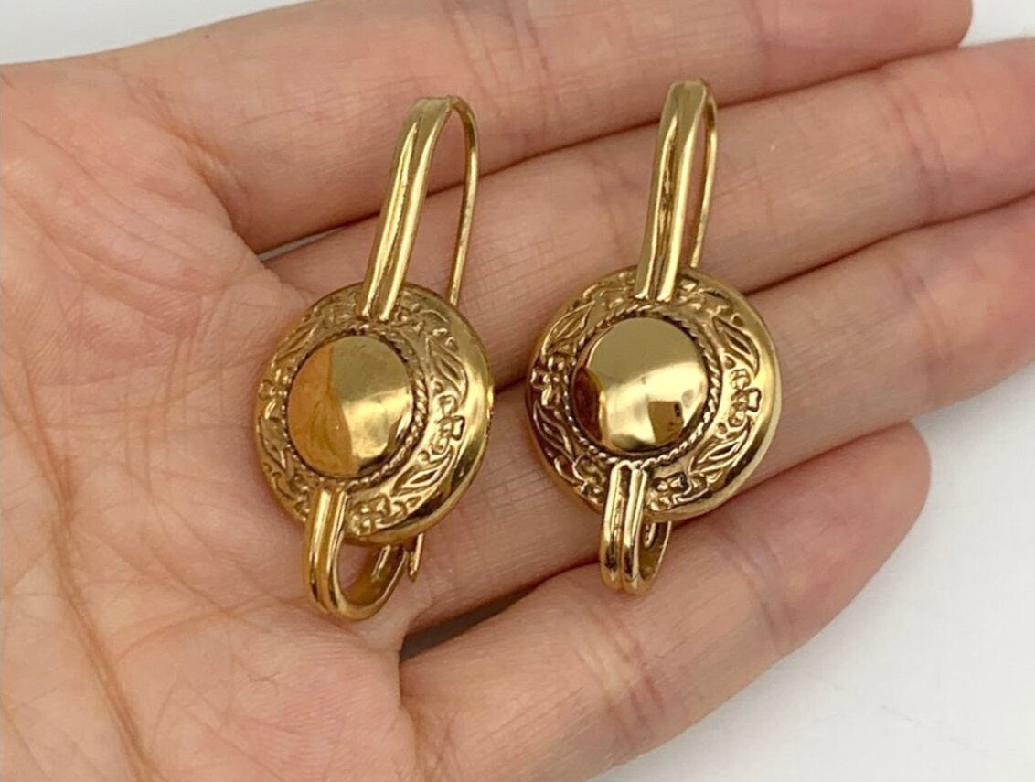 Gold Vintage Earrings - Drop Button Earrings, Gold Ancient Earrings