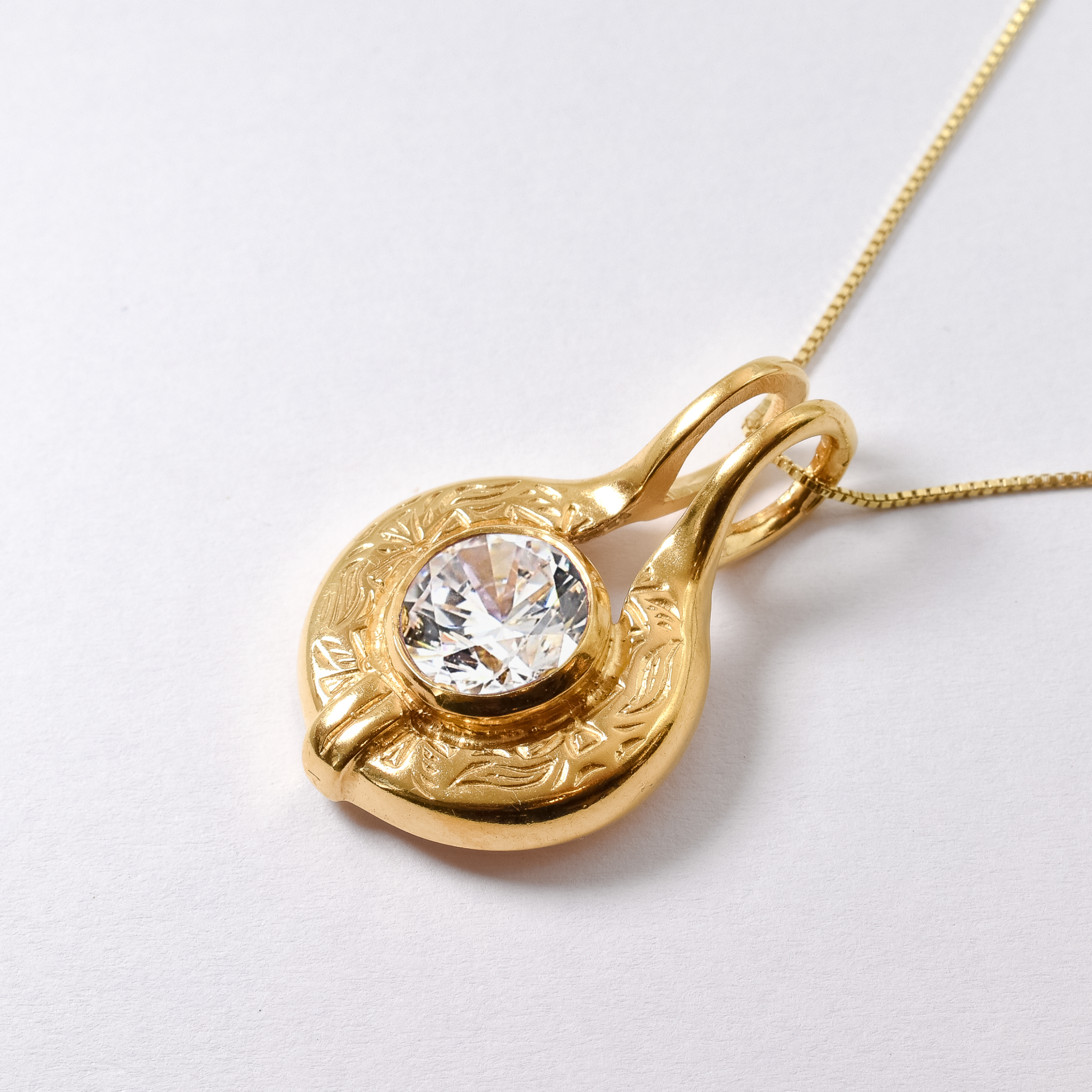 Egyptian Diamond Pendant set with a Created Diamond in a perfect diamond cut, flawless clarity & stunning brilliance, at 10mm, 4 Carats.