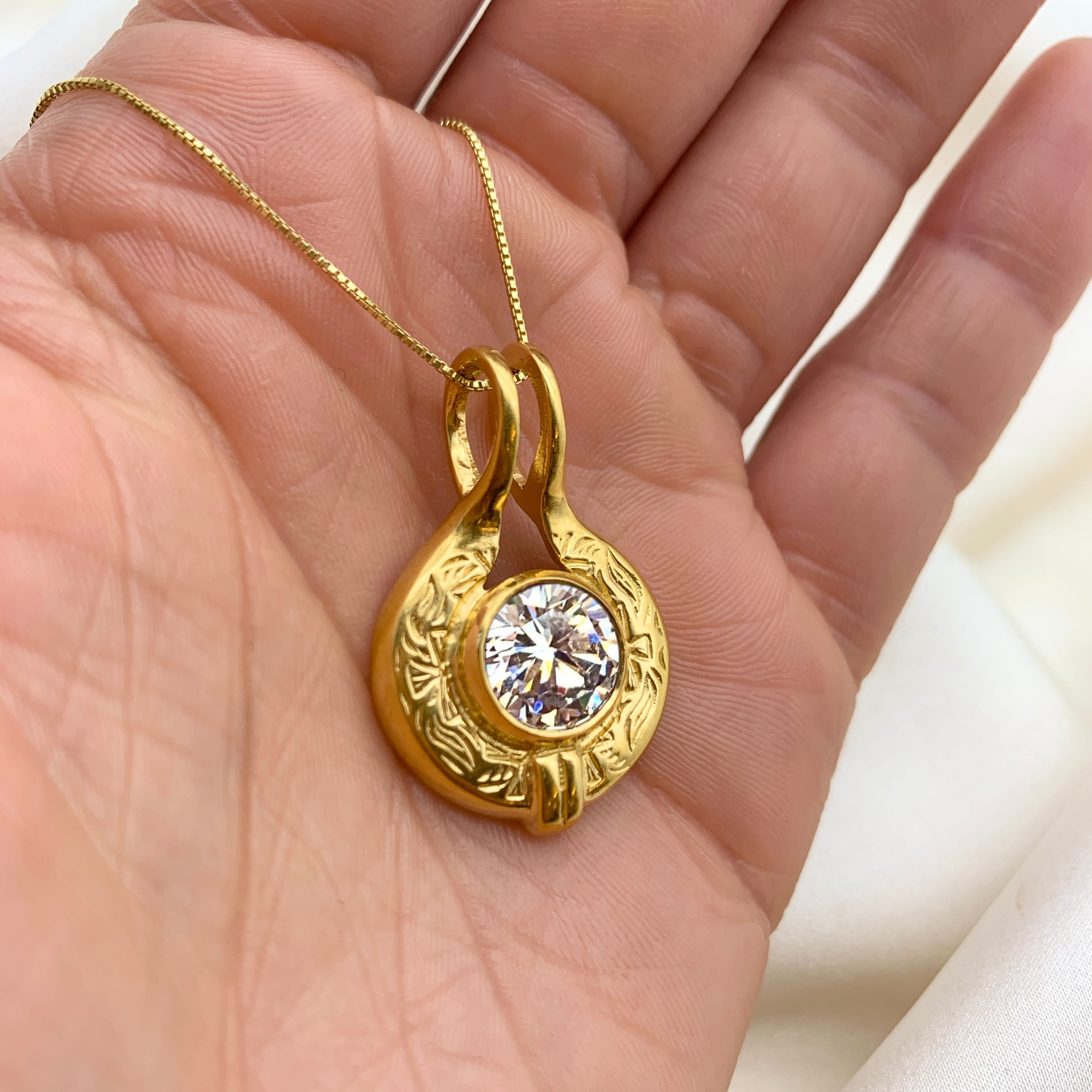 Egyptian Diamond Pendant - Gold Aztec Necklace - Round Diamond Necklace