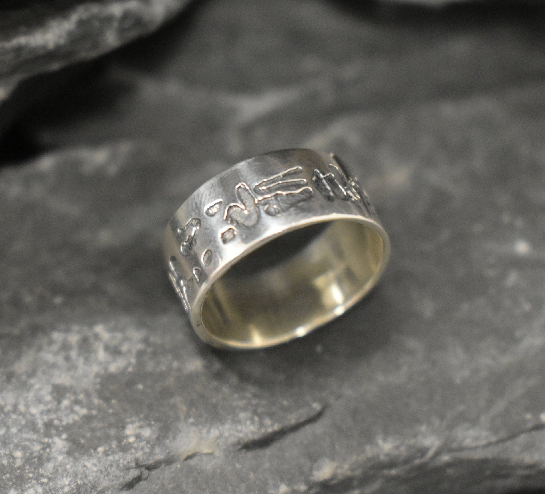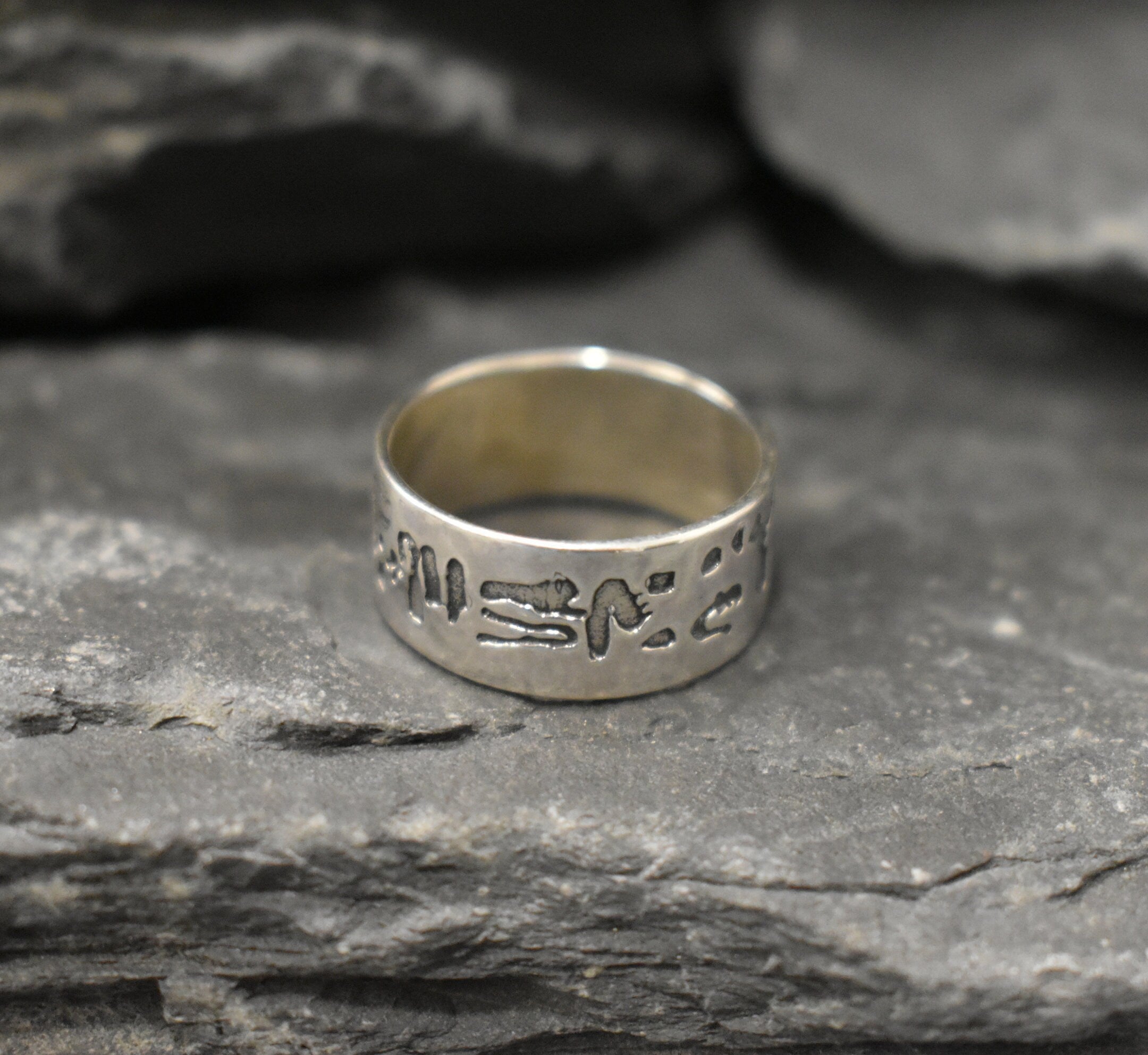 Silver Egyptian Ring - Antique Silver Ring - Silver Wide Band Ring