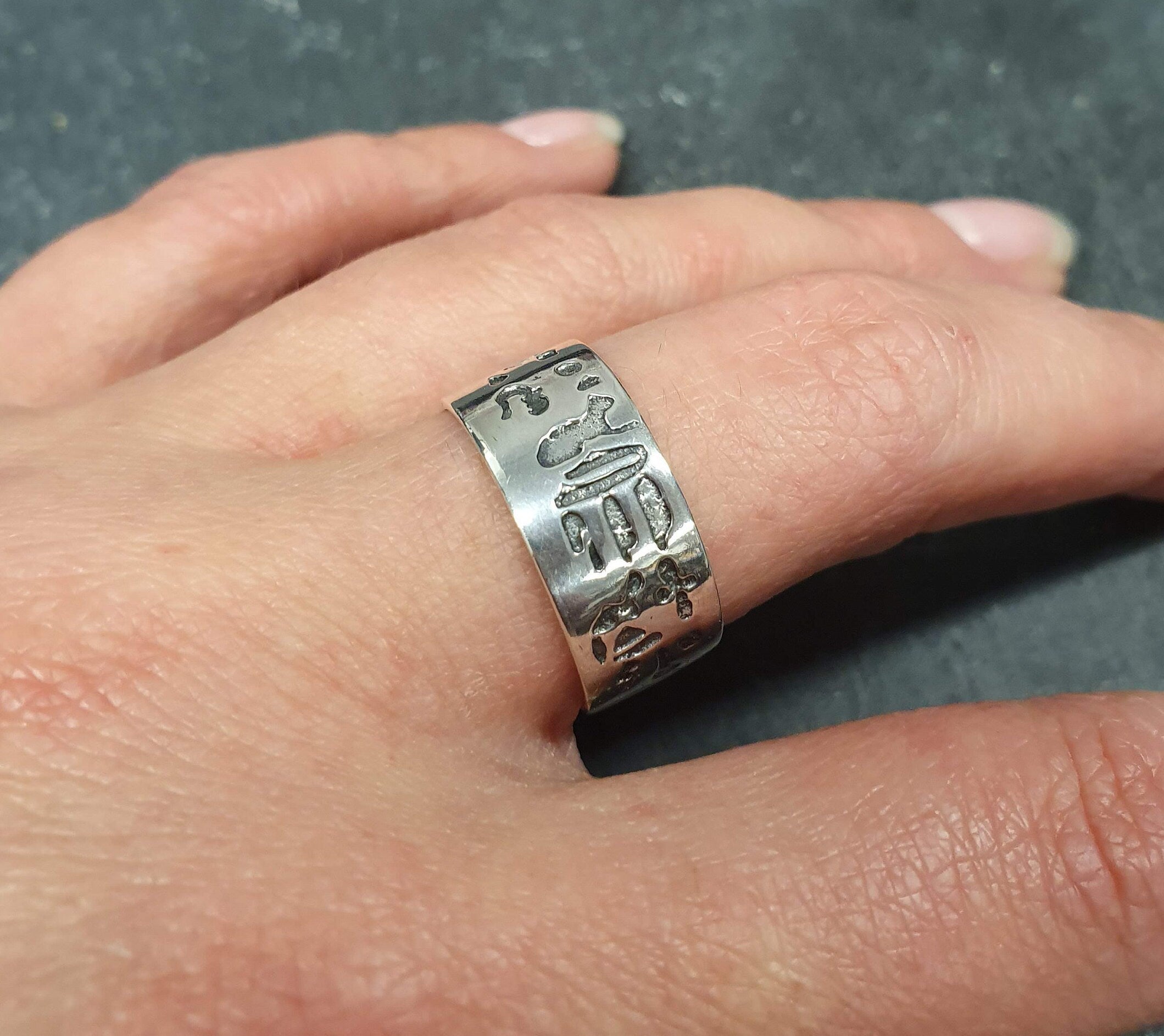 Egyptian Ring, Symbolic Ring, Statement Ring, Tribal Ring, Vintage Silver Ring, Thick Band, Egyptian Style Ring, Solid Silver Ring, Silver