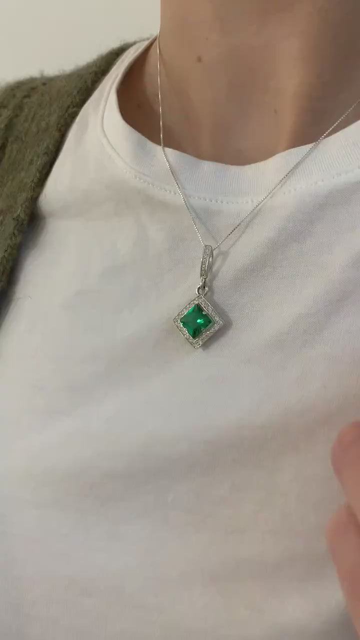 Beautiful 925 Sterling Silver Emerald Earrings with a square halo, a meaningful gift for May birthdays and memorable moments.