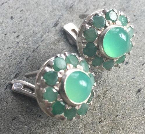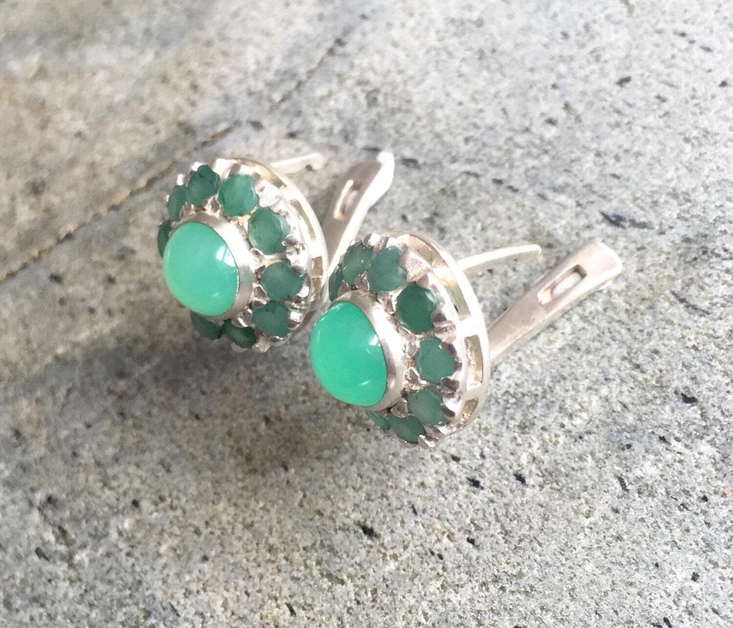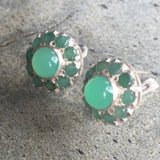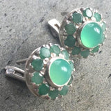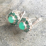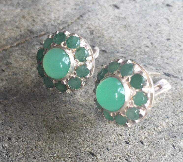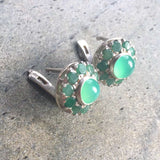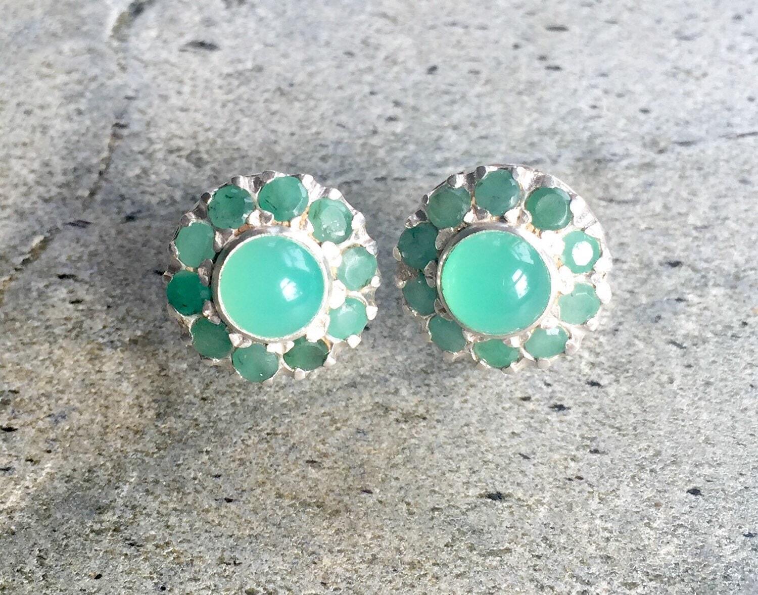 Emerald Earrings, Natural Emerald, Chrysoprase Earrings, Antique Earrings, Vintage Earrings, Natural Stones, Round Studs, Silver Earrings