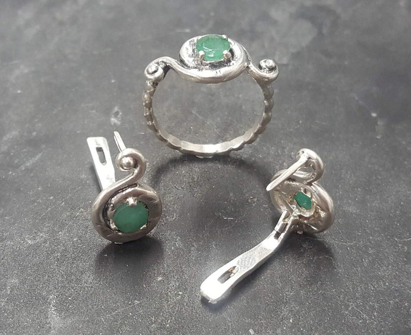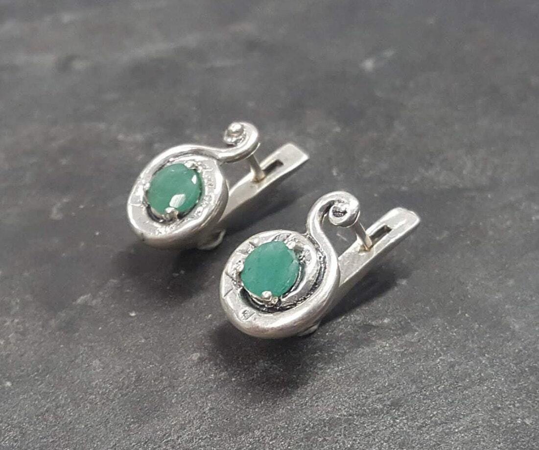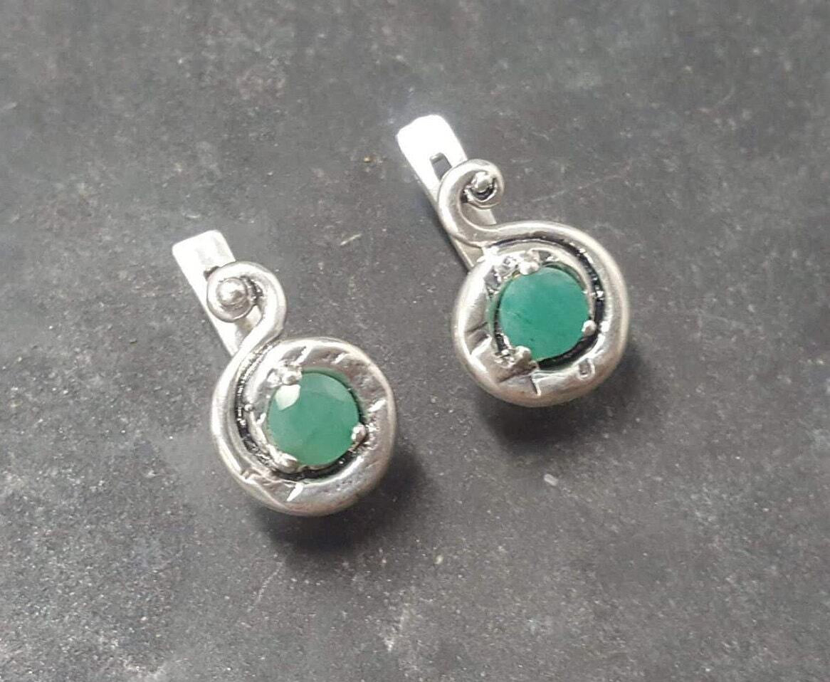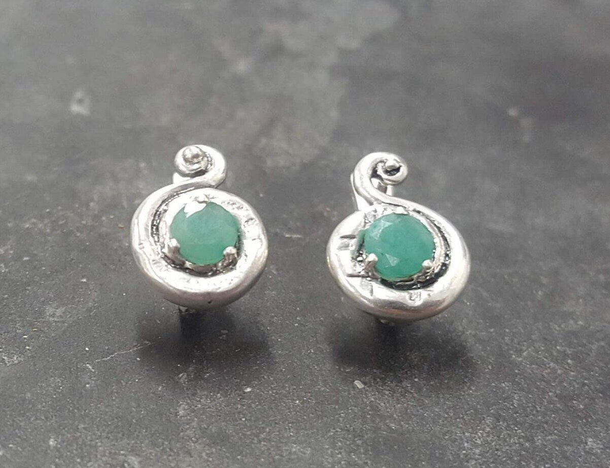 Round Emerald Earrings - Natural Emerald Studs - Vintage Emerald Earrings