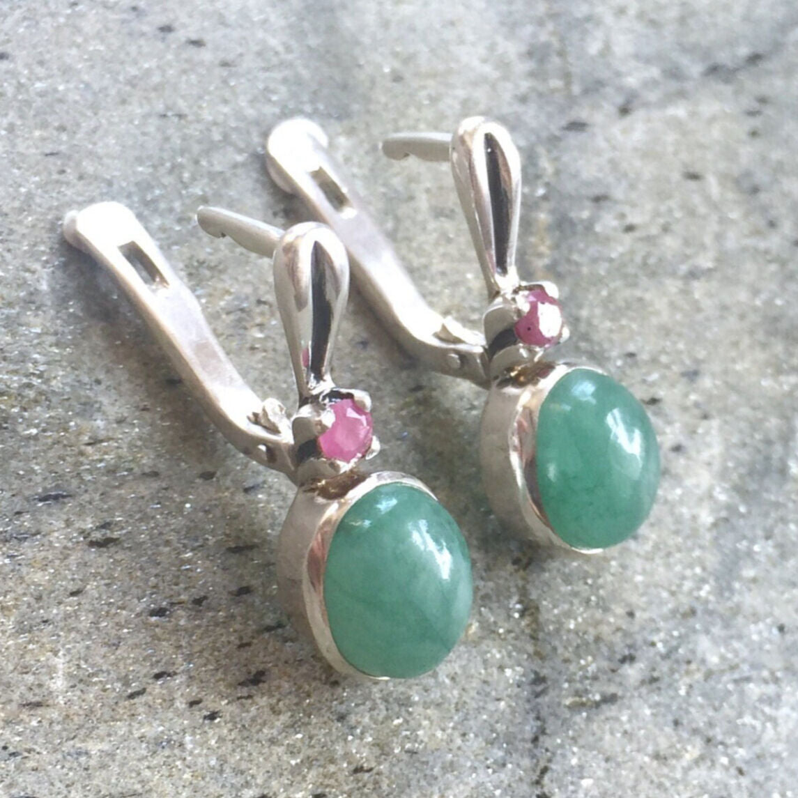 Emerald Drop Earrings - May Birthstone Earrings - Ruby Silver Earrings