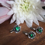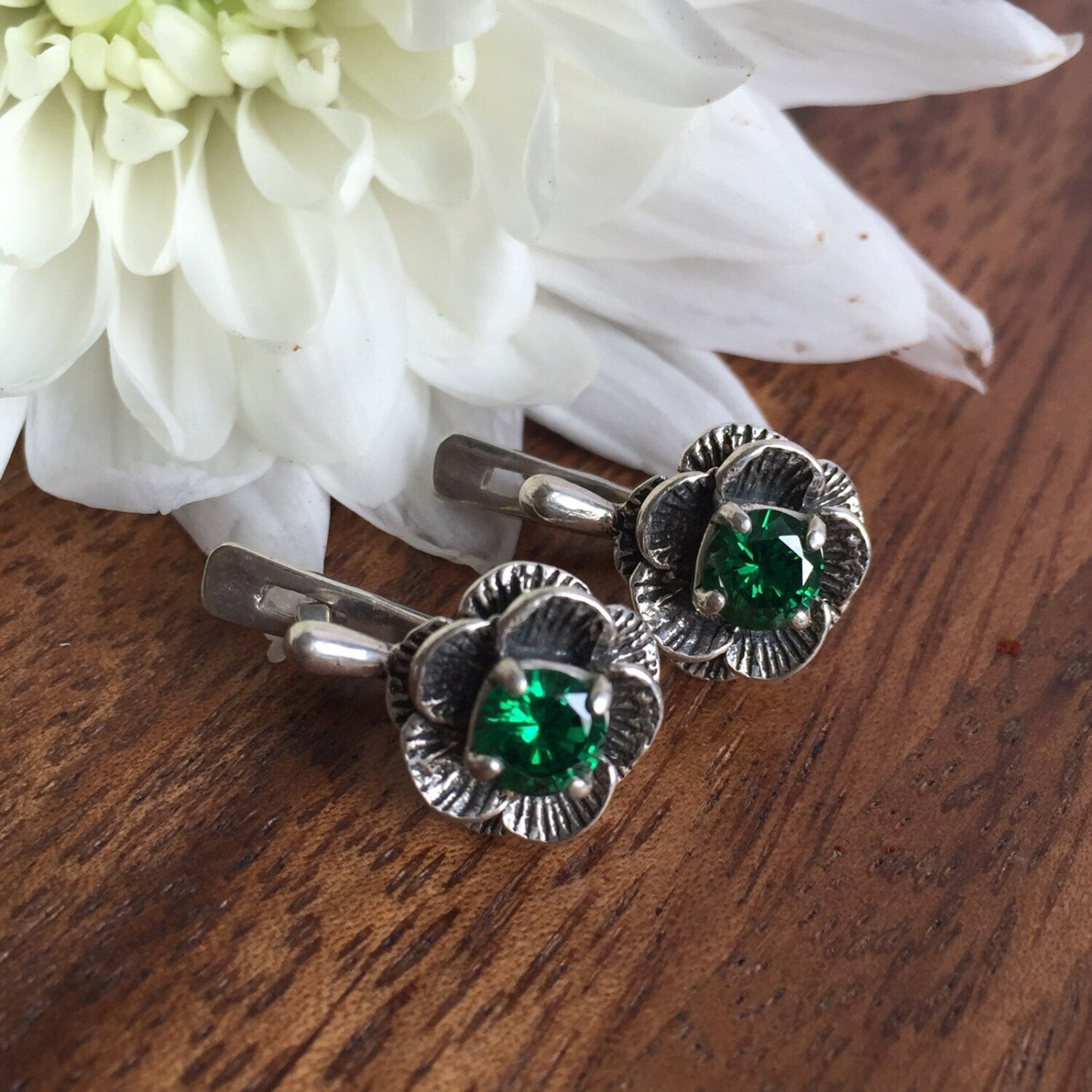 Emerald Flower Earrings - Rose Vintage Studs - Dainty Emerald Earrings