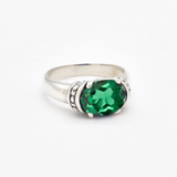Stylish 925 Sterling Silver ring showcasing a vibrant oval Created Green Emerald, a lovely May birthstone gift choice.