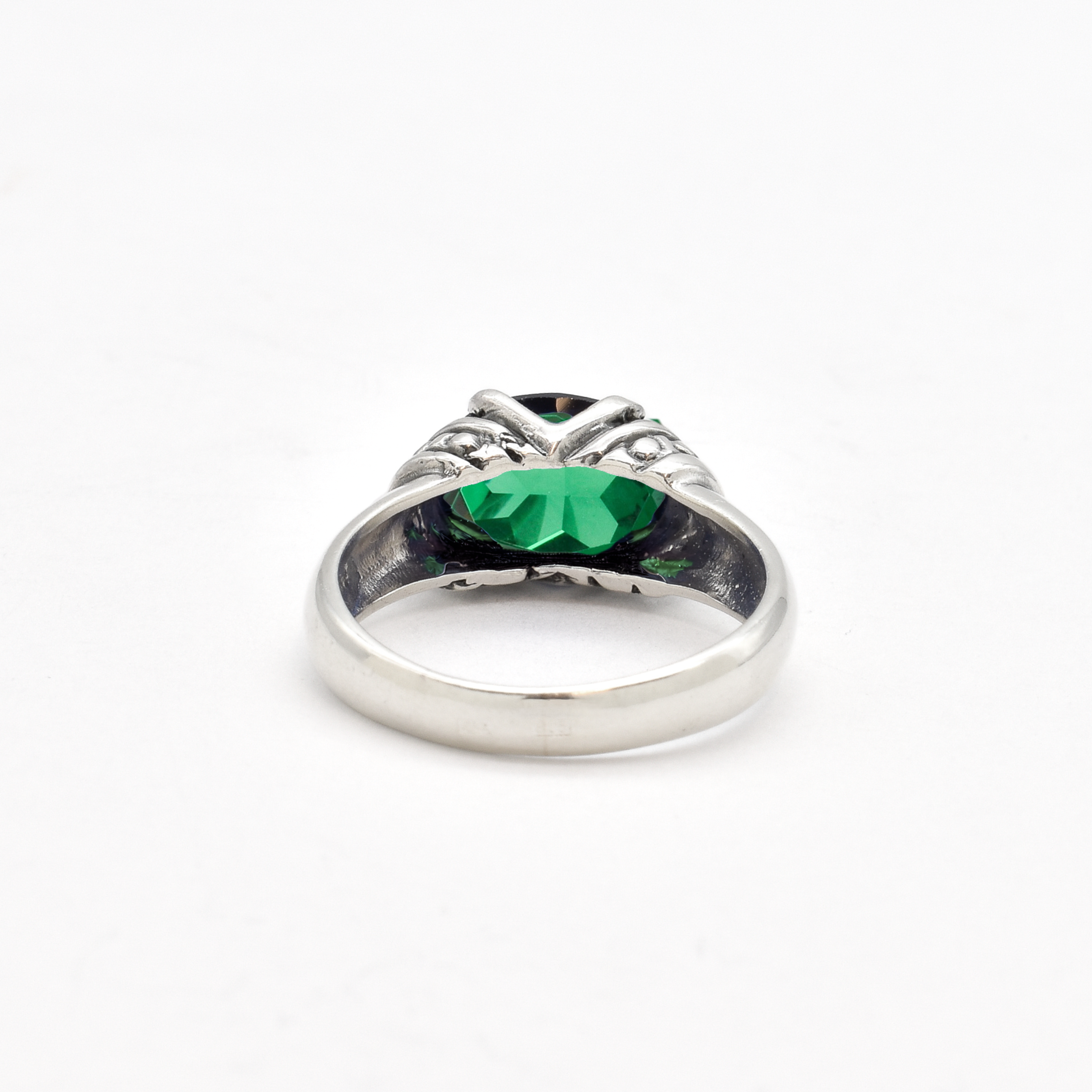 Charming 925 Sterling Silver ring set with an oval Created Green Emerald, an exquisite gift for birthdays and special occasions.