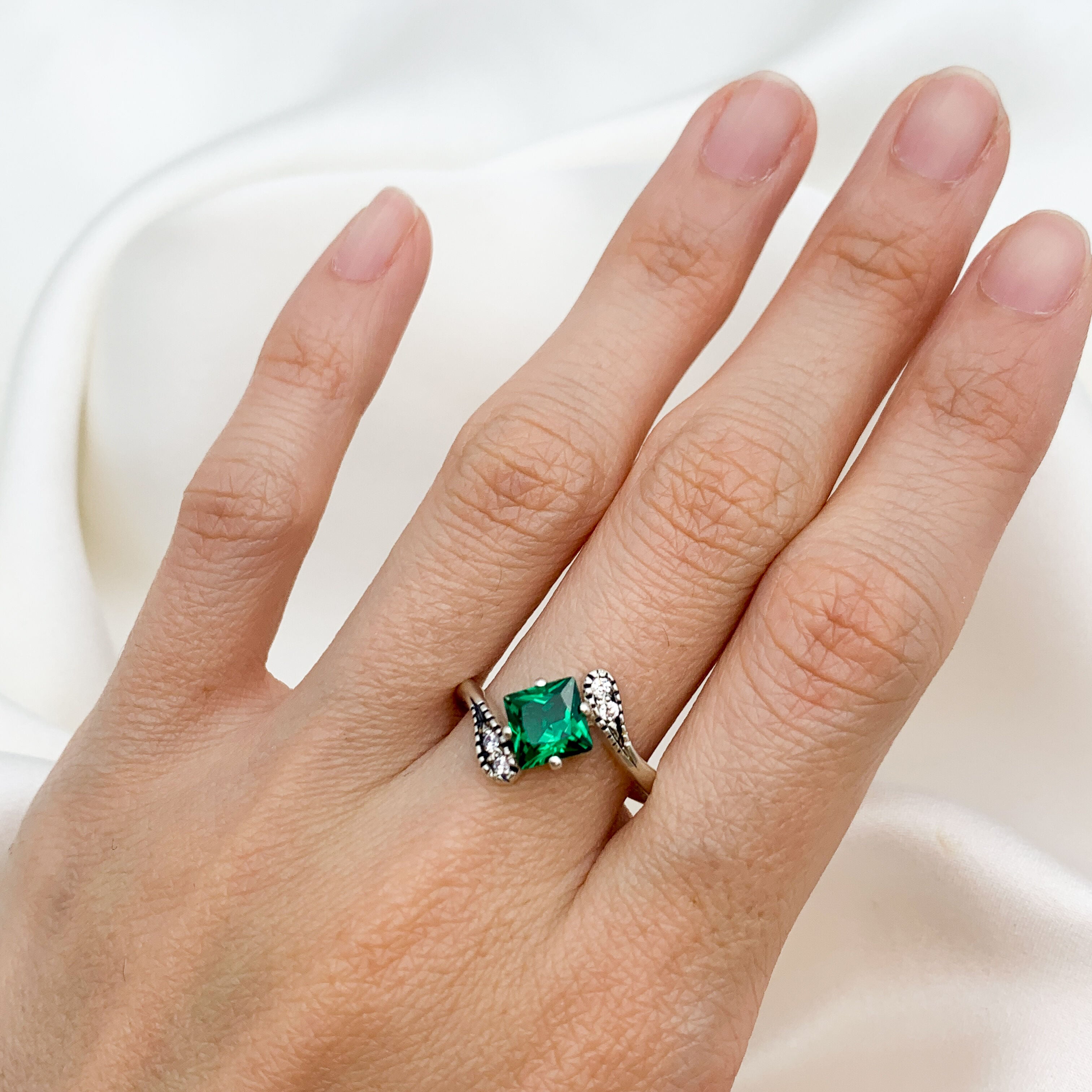 Emerald Square Ring - Princess Cut Ring - Vintage Emerald Ring