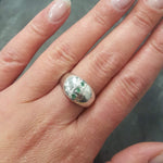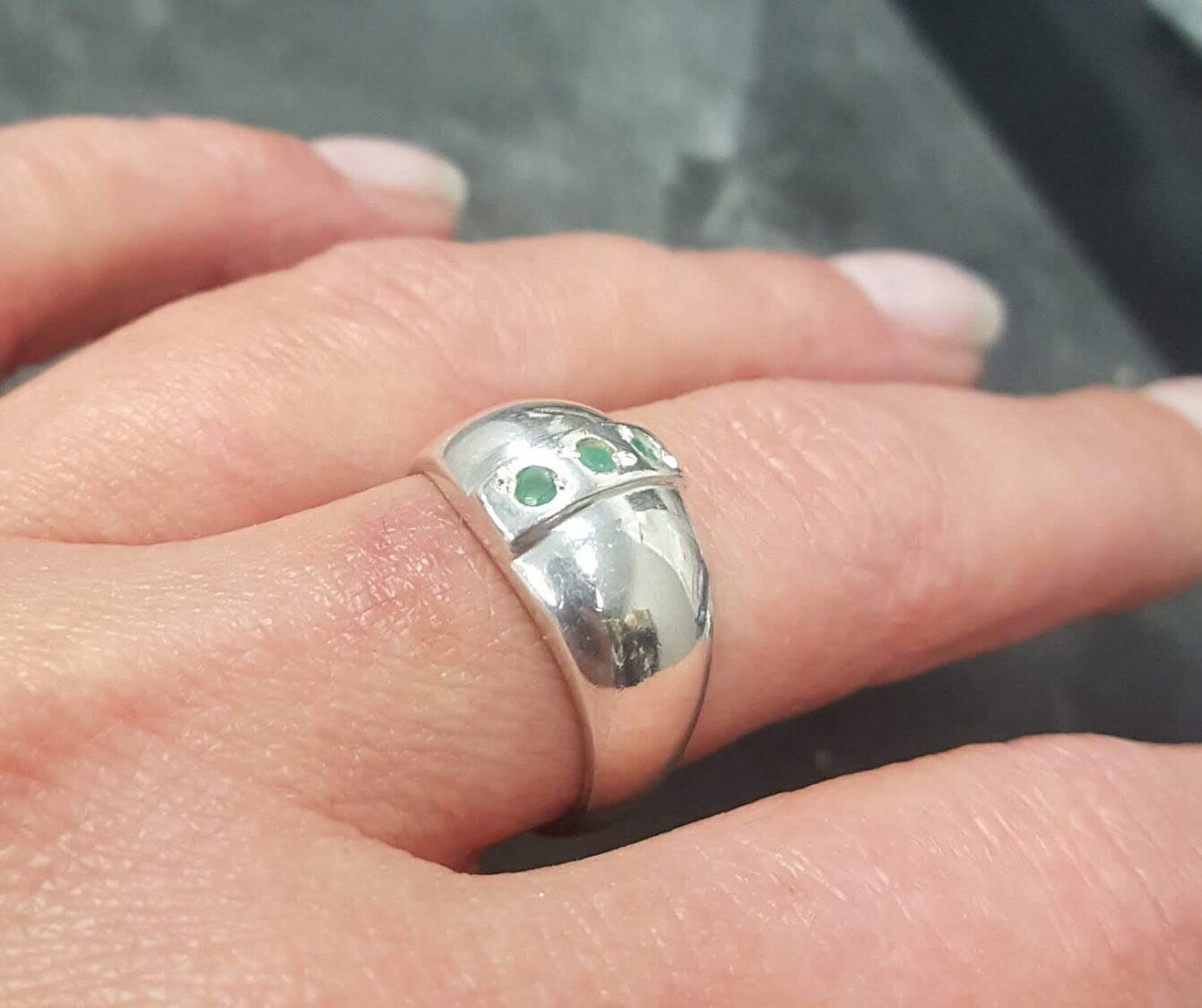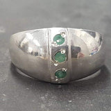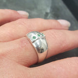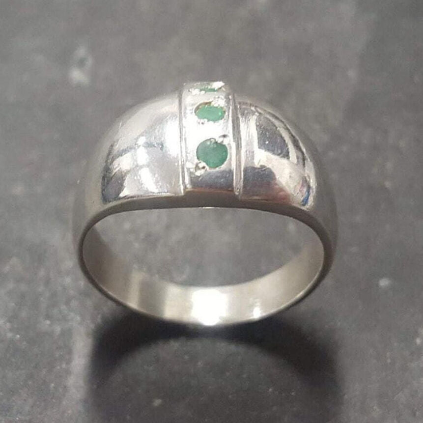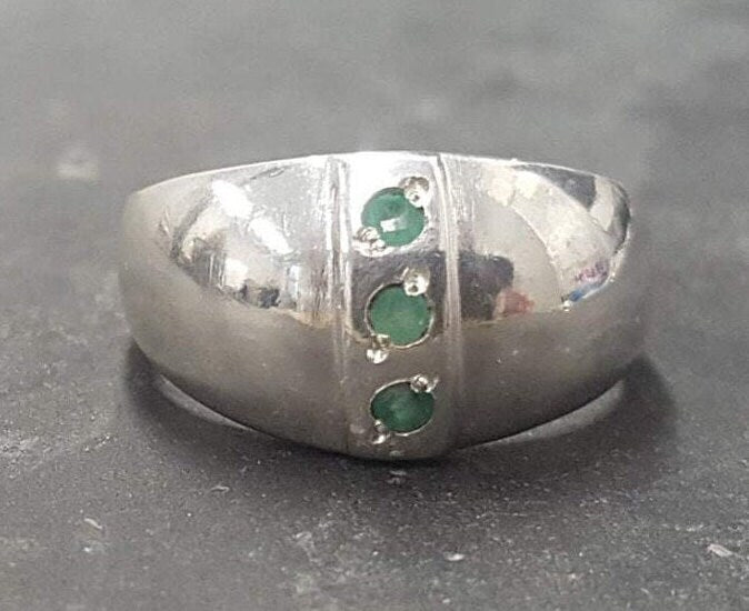 Emerald Dome Ring - Wide Silver Band - Chunky Vintage Ring