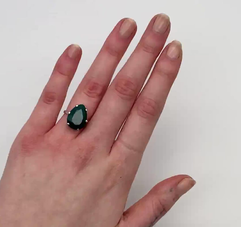 Green Statement Ring set with a teardrop shape Created Emerald in a perfect diamond cut & opaque green color, at 16x12mm (9 Cts).