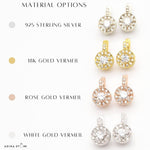Adina Stone material options for 925 Sterling Silver, 18K Yellow Gold Vermeil, 18K White Gold Vermeil, 18K Rose Gold Vermeil.