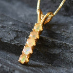 Fire Opal Pendant - Vertical Opal Necklace - October Birthstone Necklace
