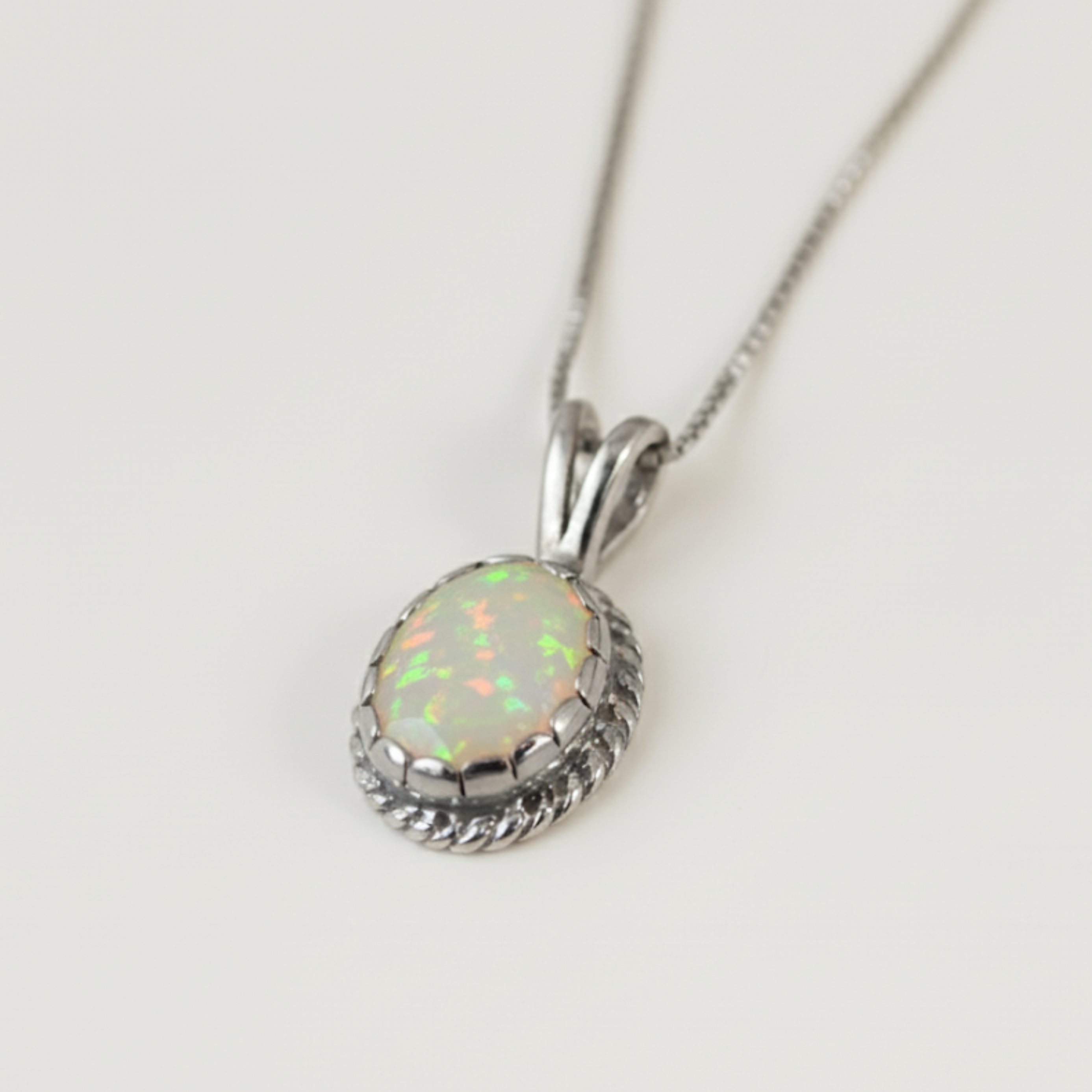 Natural Ethiopian Opal Pendant made in 925 Sterling Silver with Oval Natural Fire Ethiopian Opal in setting, October Birthstone gift idea, symbolizes hope, purity, and truth, ideal for everyday wear and perfect for birthday gifting and special occasions.